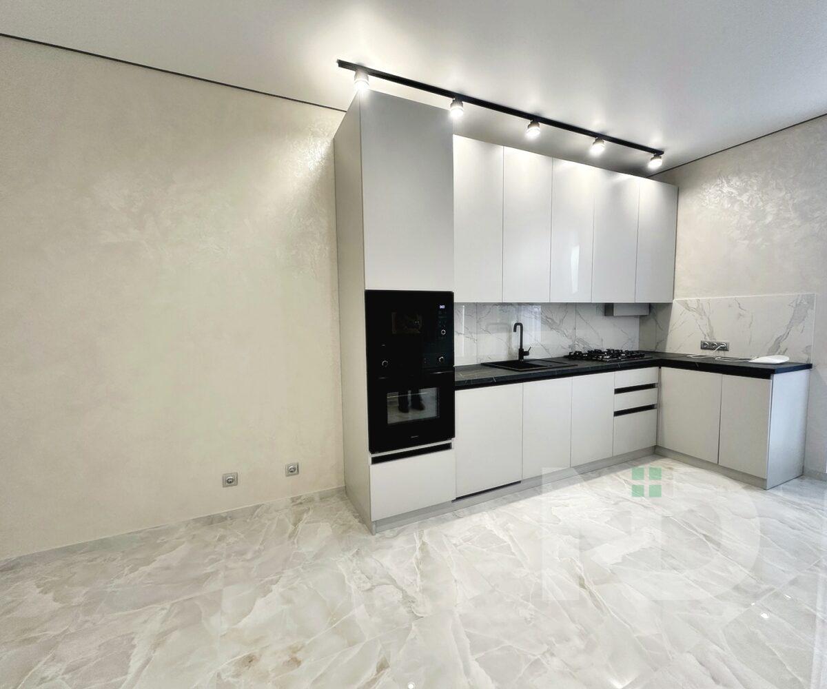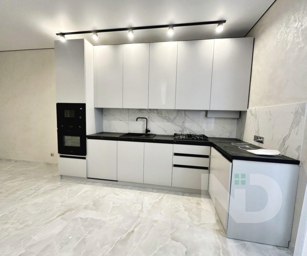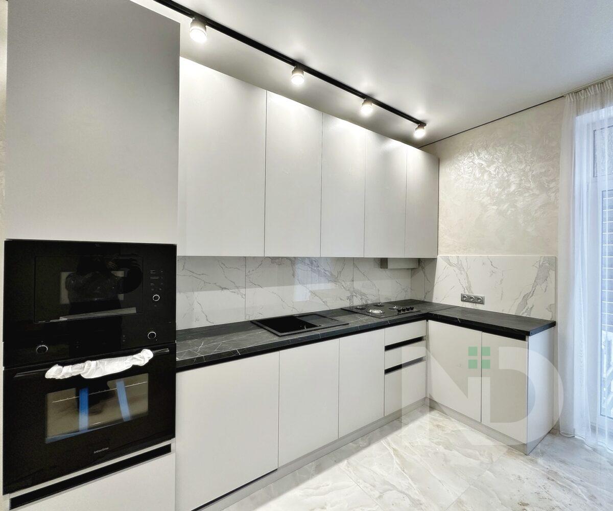 Зроблено ремонт у світлих тонах, на кухні встановлена вбудована кухня з технікою.