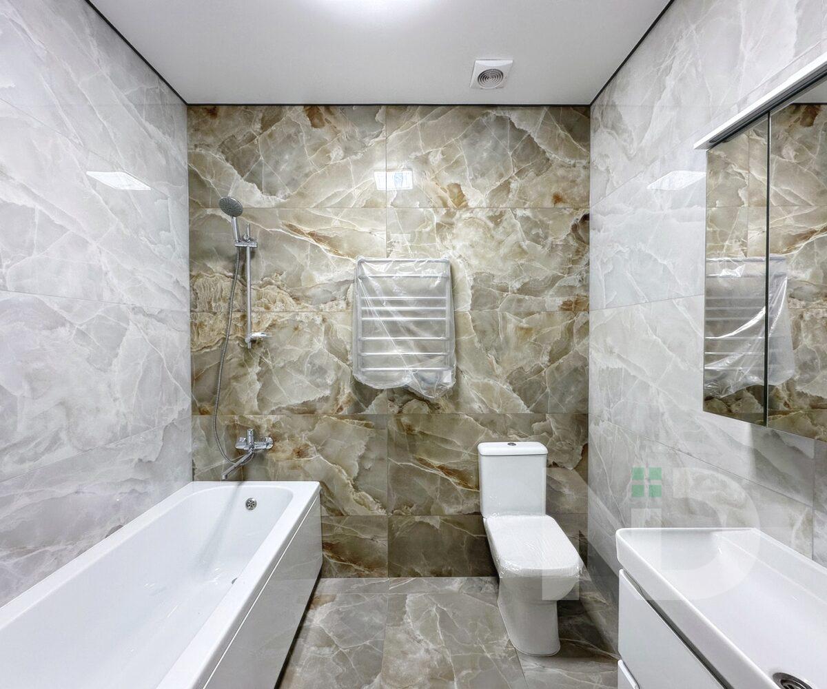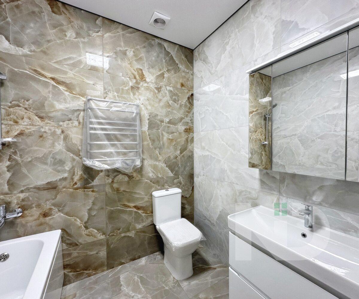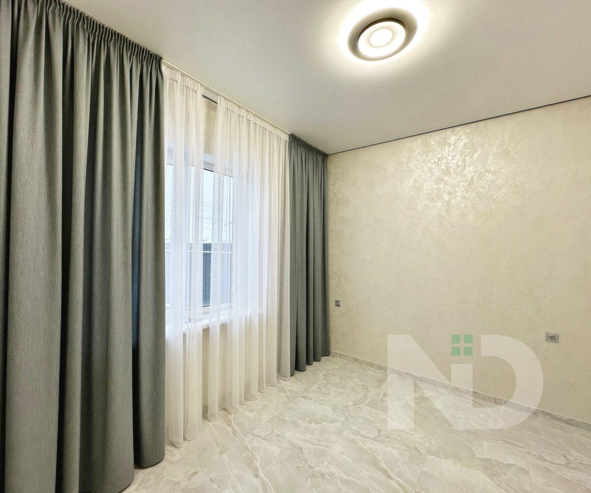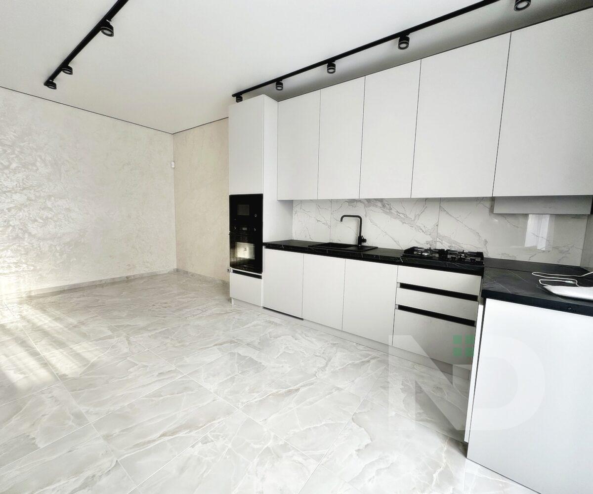 Зроблено ремонт у світлих тонах, на кухні встановлена вбудована кухня з технікою.