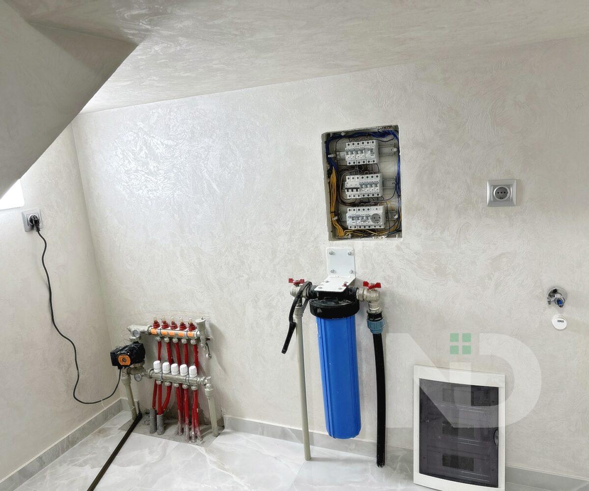 По всьому першому поверху розведена тепла підлога, у спальнях другого поверху радіатори, встановлено газовий двоконтурний котел.