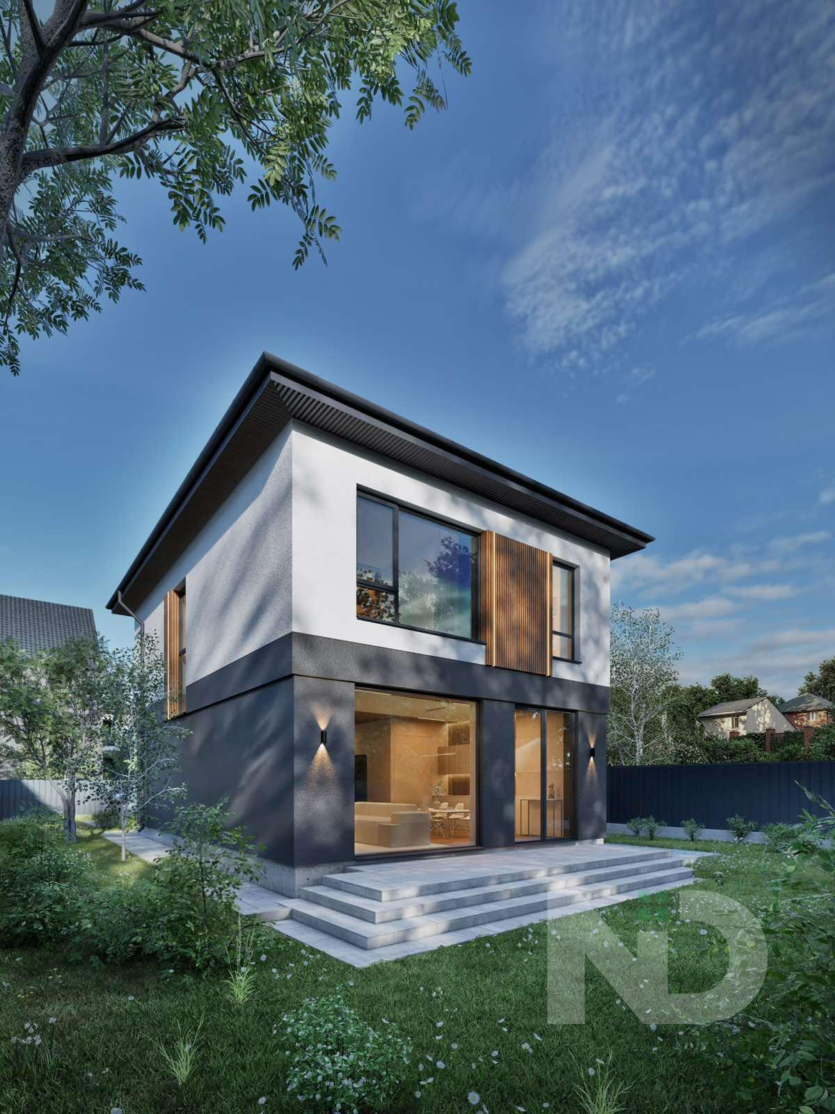 Загальна площа: 154 м ²; Житлова площа: 63 м; Площа кухні: 49 м²; Площа ділянки: 7,11 соток Сучасний будинок загальною площею 154 кв.м в центрі Дмитрівки. Архітектура орієнтована на…