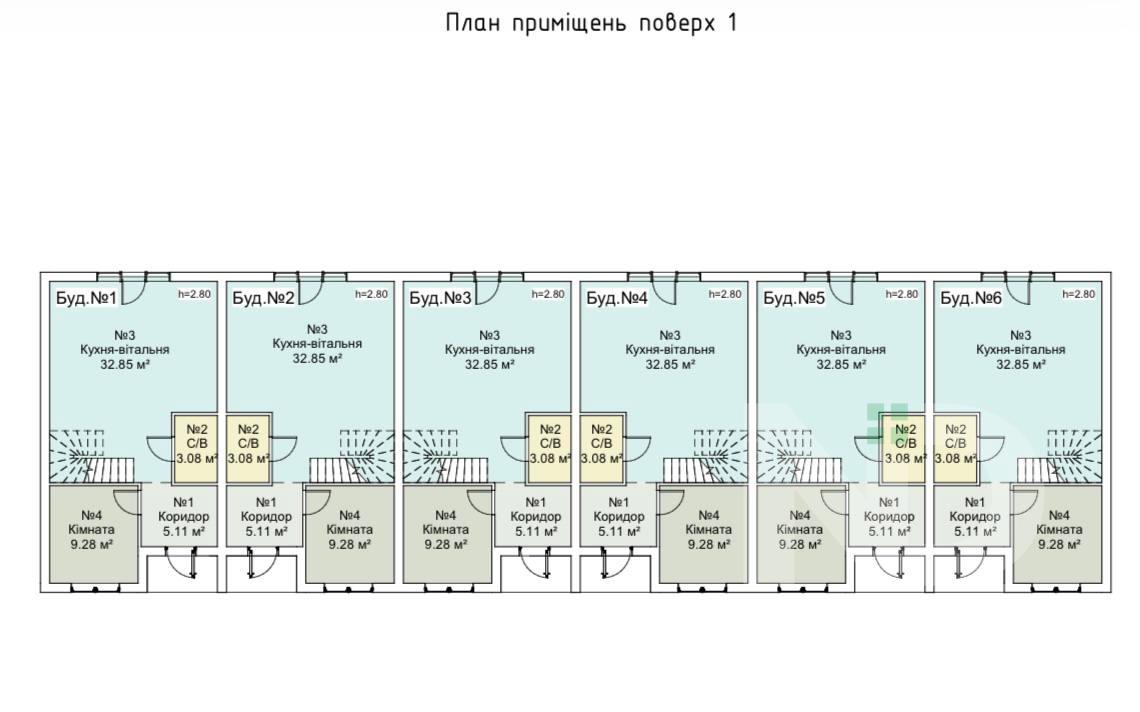 До вашої уваги новий проект таунхаусів у Бучі! У проекті представлено 6 будинків. Таунхаус має раціональне планування, що дозволить вам втілити ваші задуми у реальність. Загальна площа будинку 99.7 м2. На першому поверсі розташована кухня-вітальня 32 м2, з якої є вихід на терасу, кімната площею 9,2 м2, яку ви зможете використовувати як кабінет або гостьову кімнату, санвузол та коридор. На другому поверсі будуть розміщені три окремі кімнати, які можна облаштувати під дитячу та батьківську спальню. Сам таунхаус побудований з якісних матеріалів та поєднує в собі якість, комфорт та функціональність. Інфраструктура поряд дуже розвинена. Пішу доступність у вас будуть школа, дитячий садок, супермаркети, торгові центри, кафе та розважальні заклади.