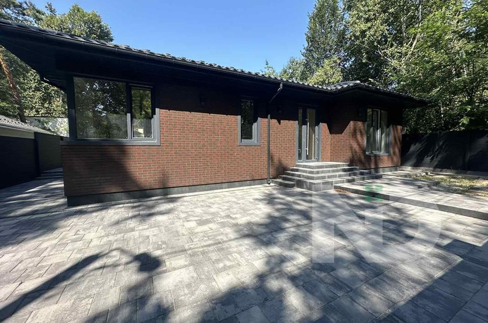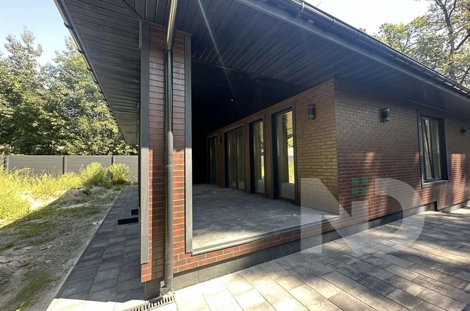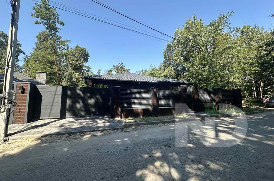 Великий одноповерховий будинок серед дубів та сосен. 158 м2 з критою терасою 26 м2 на 7 сотках. Навколо дуби та сосни, новий приватний сектор, зручний асфальтований підʼїзд. Ділянка рівна, огороджена стильним металевим парканом жалюзі з відкатними, автоматичними воротам.