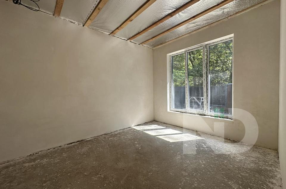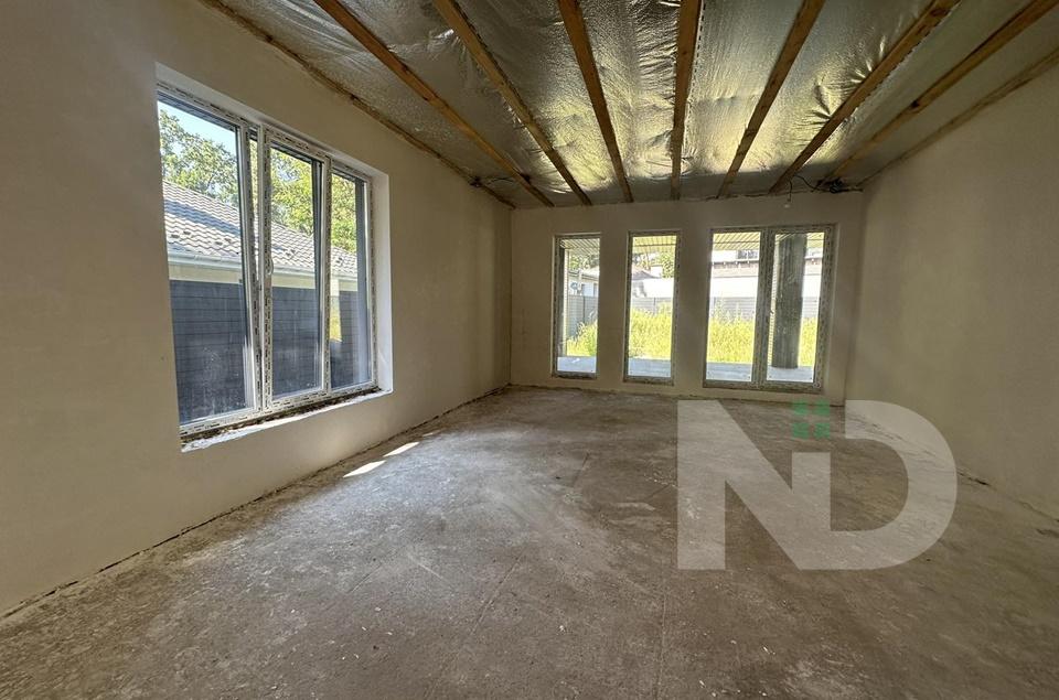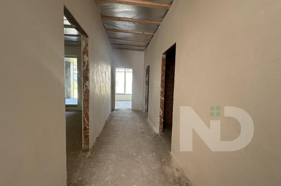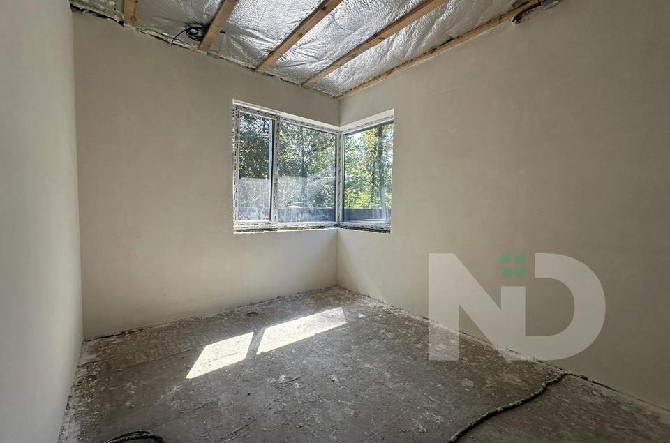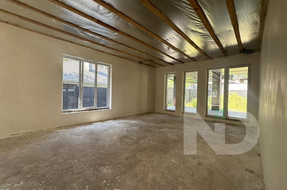 Вдале планування з великою кухнею-студією 50м2, є окреме холодне приміщення під класову з котельнею. З вітальні вихід на криту терасу 26 м2. Три окремі спальні 17,5, 18 та 19 м2, два санвузли та гардероб. Є можливість зробити другий поверх – повноцінних 40 м2 та для зберігання речей вся площа під скос.