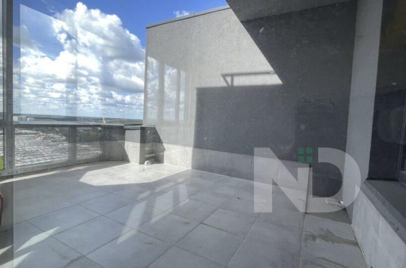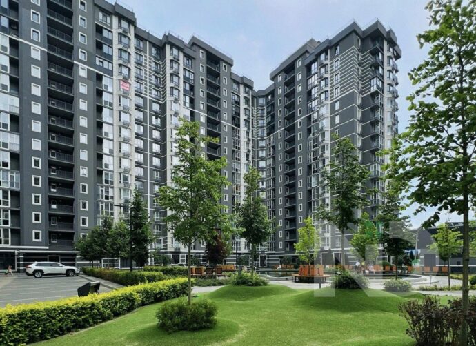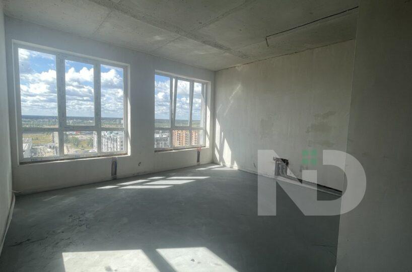 Помешкання має великі панорамні вікна, з яких відкривається неймовірний краєвид на місто. Простора кухня-вітальня з виходом на велику терасу створює затишну атмосферу та дає можливість насолоджуватися ранковою кавою просто неба.