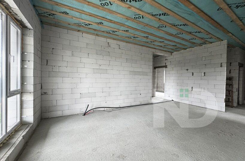 Будинок зведений із газоблоку StoneLight товщиною 300 мм та утеплений пінопластом 150 мм. Фундамент — стрічковий монолітний із армованою плитою товщиною 100 мм. Дах виконано з європейської металочерепиці, утеплення даху — мінеральна вата 200 мм. Фасад оздоблений клінкерною плиткою та штукатуркою типу «баранець».
