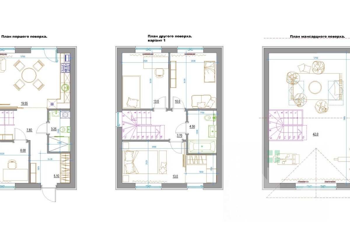 У таунхауса вдале планування: на першому поверсі кухня вітальня з виходом на задній двір, передпокій, кабінет та санвузол. На другому поверсі 3 спальних кімнати, санвузол. Передбачено 3-й мансардний поверх, який Ви можете облаштувати під себе.