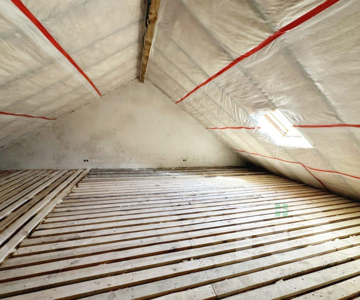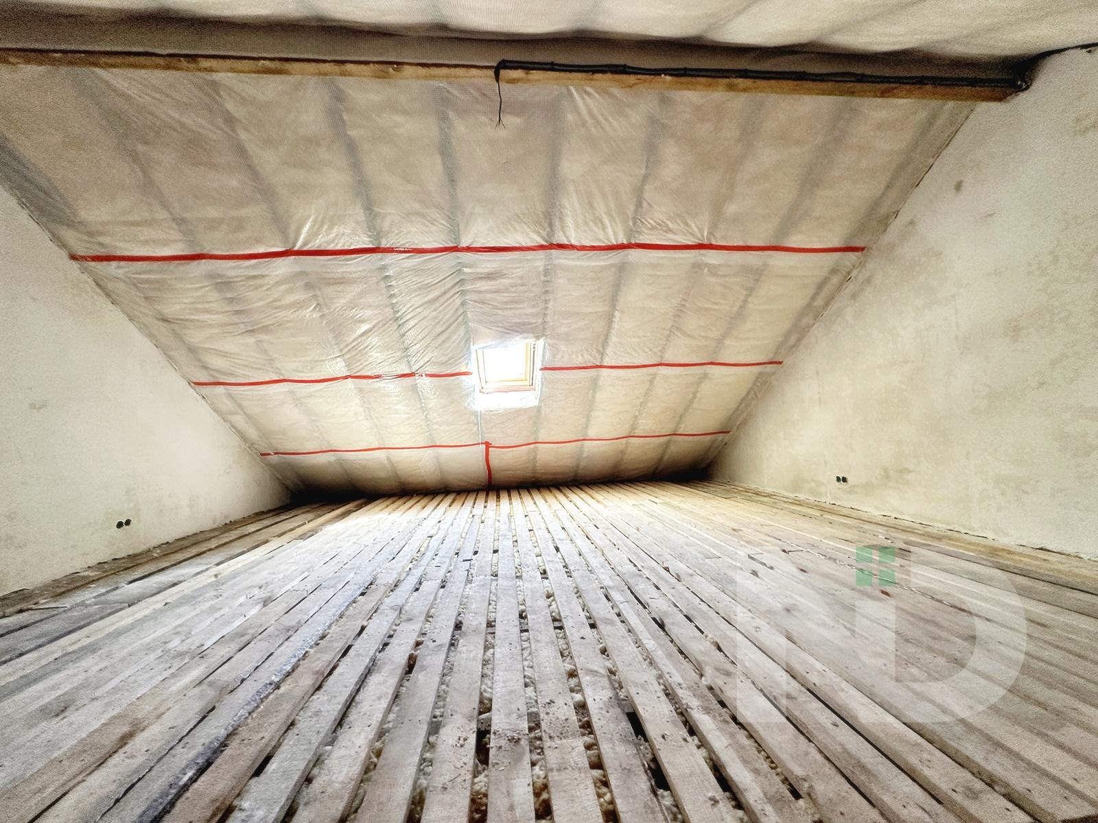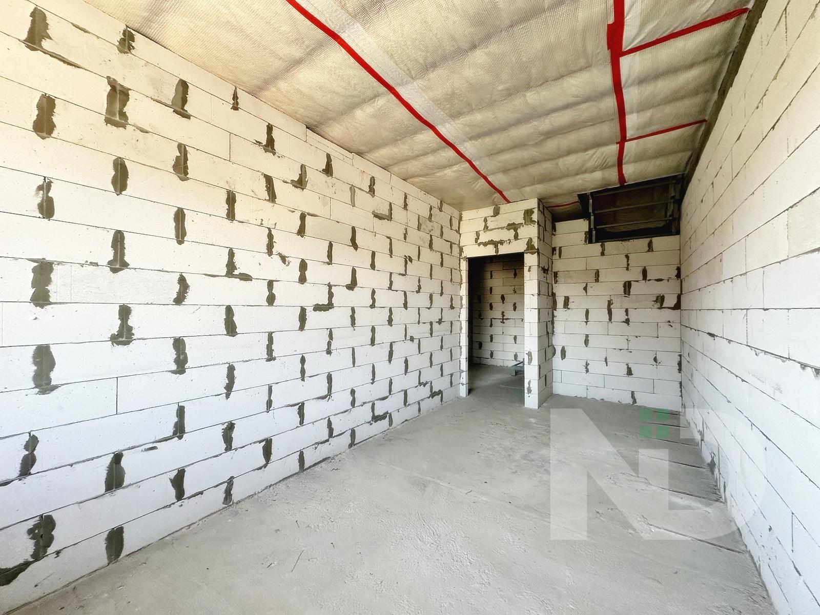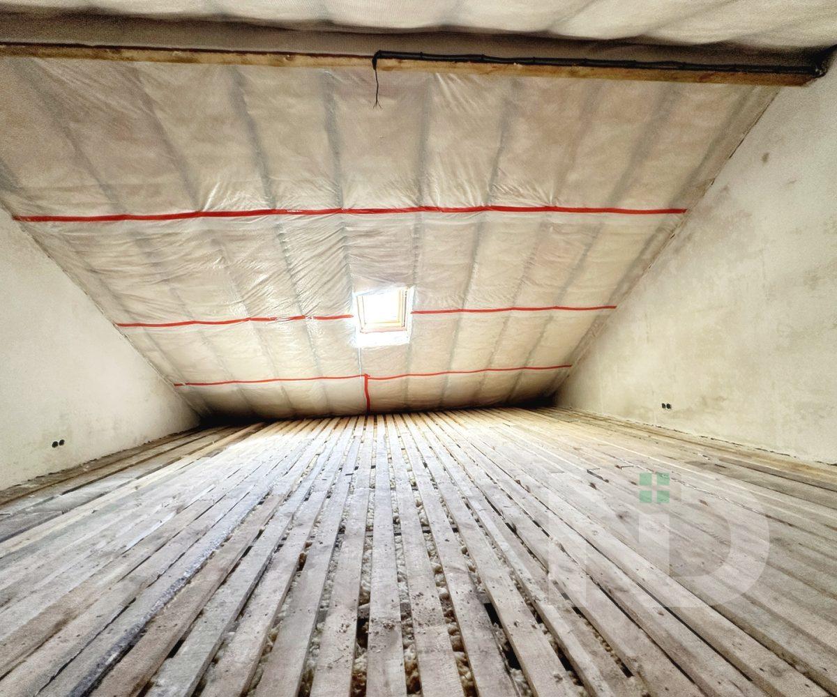 Загальна площа 90.6 м2. Дуже вдале планування: на першому поверсі передпокій з місцем під шафу, гостьовий санвузол та велика кухня-вітальня 36.4 м2. На другий поверх ведуть бетонні сходи, тут розташовуються 2 спальні та ванна кімната. Є можливість облаштувати повноцінну кімнату на 3му поверсі в 20 м2, висота в конику 2.6 метри, тут вже встановлено мансардне вікно та залізний каркас для сходів. Перекриття між другим та третім поверхом дерев’яне, утеплене 200 мм мінвати, та підбите дерев’яною дошкою.