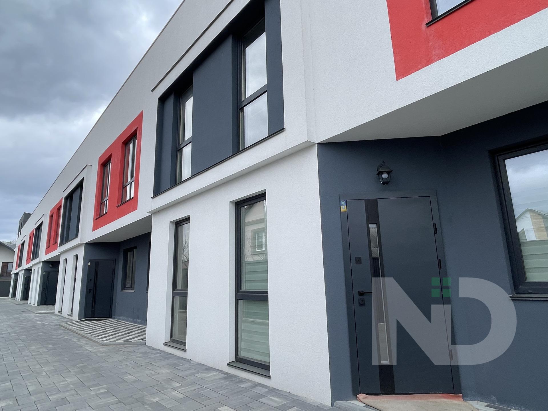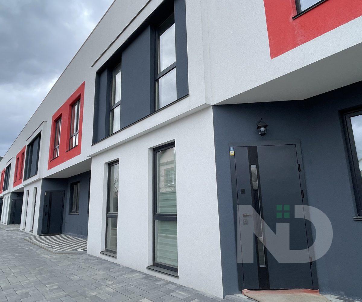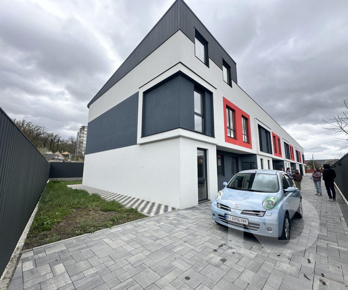 Архітектура таунхауса виконана в сучасному стилі з яскравими червоними акцентами, що надають будинку індивідуальності. Зручне розташування дозволяє швидко дістатися як центру міста, так і до парків та зон відпочинку, а тиха вулиця забезпечує спокій та приватність.