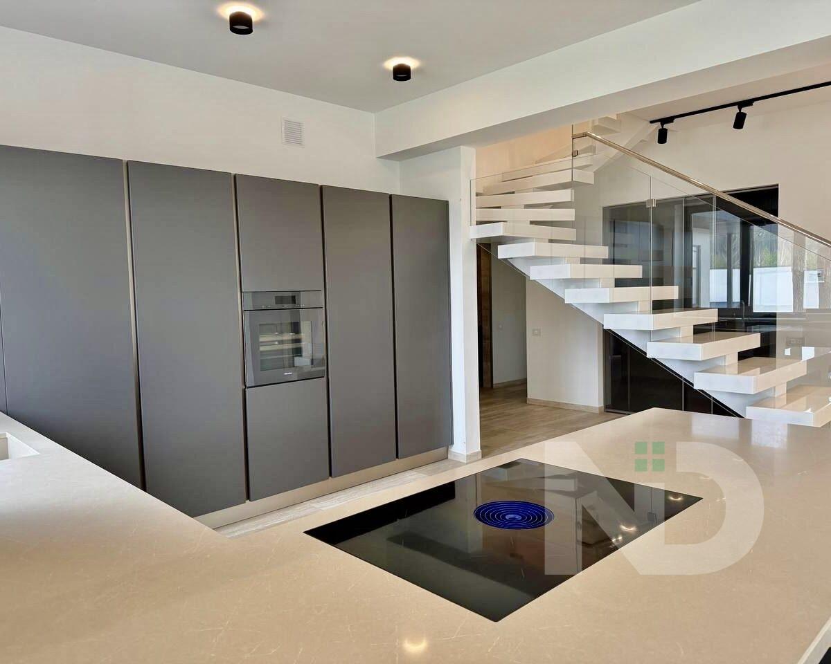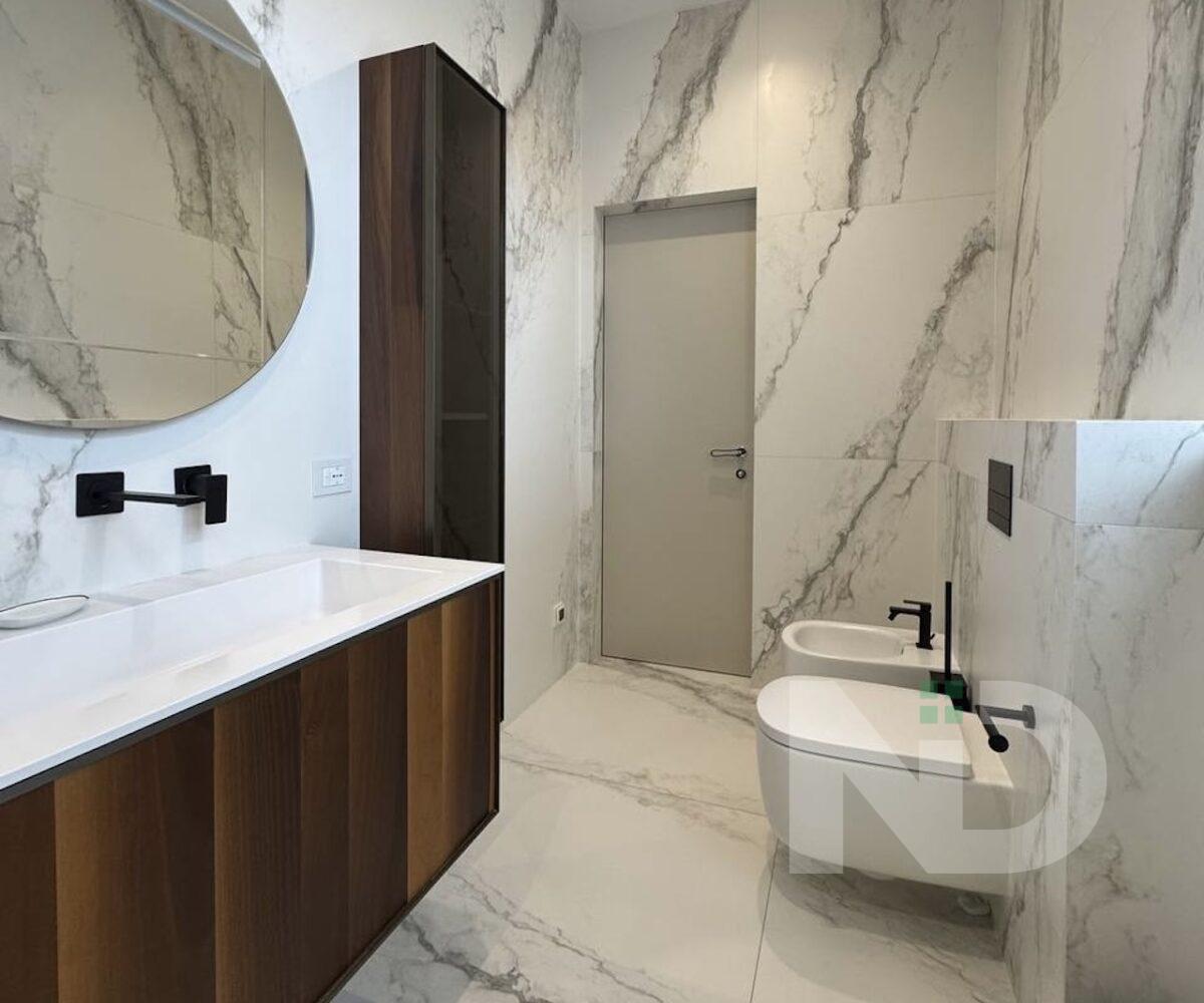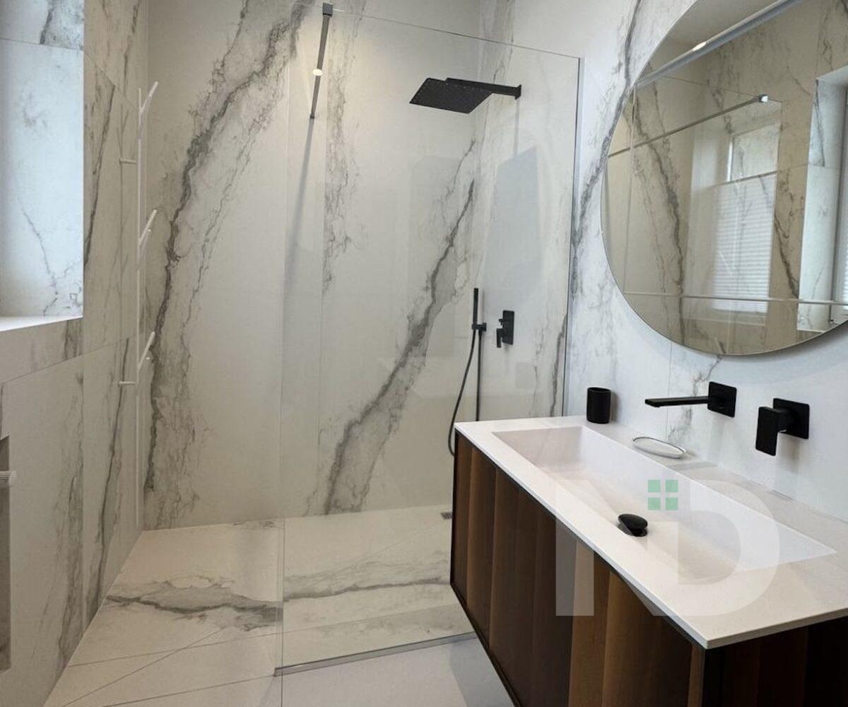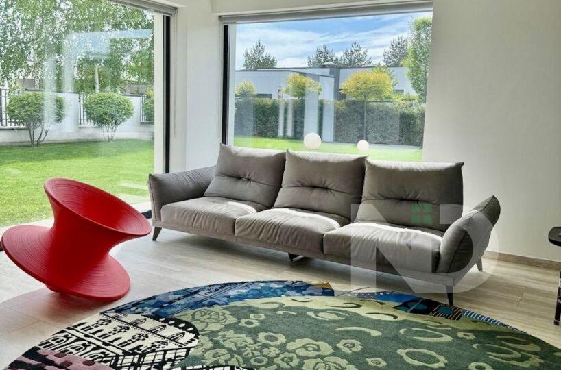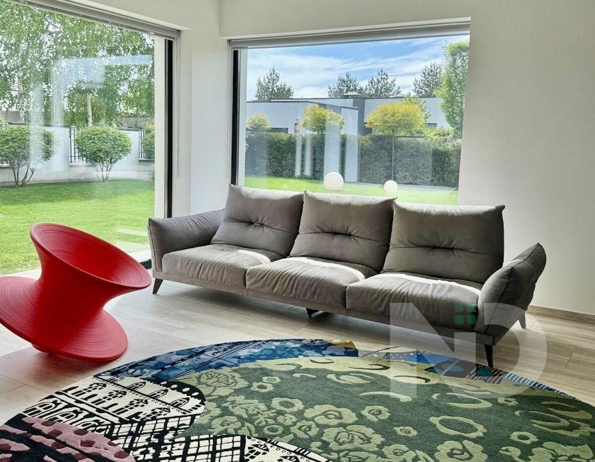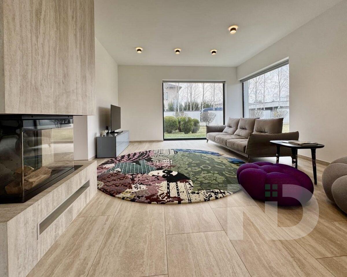 Оздоблення: плитка з травертину з підігрівом, дизайнерські вікна та двері (алюмінієві, звукоізоляційні), вітальня з каміном, кухня з технікою Miele та Liebherr, система очищення води, пральна та сушильна машини Miele.
