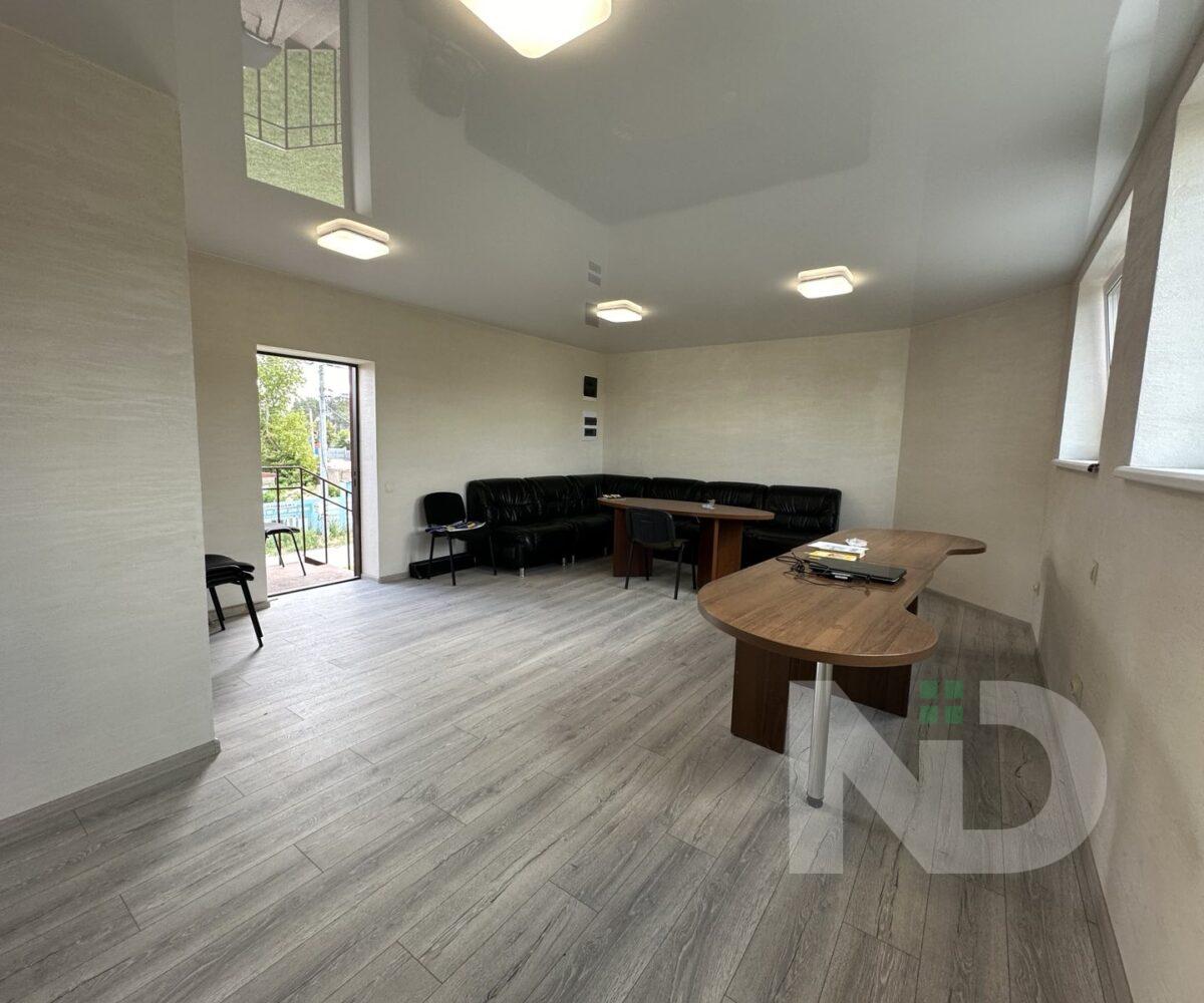 Перший поверх 85 м2 розділений на 2 приміщення 25 та 55 м2. На поверсі є 5 окремих входів, санвузол та крита, вилита тераса 25 м2. Планування дозволяє розділити простір на декілька приміщень з окремими входами і використовувати під різні типи бізнесу. Тут вже зроблений ремонт і функціонує квітковий магазин.