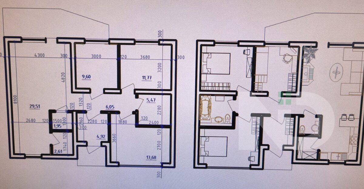 Дуплекс здається з базовим будівельним наповненням: виконана якісна лазерна стяжка підлоги, що забезпечує ідеально рівну поверхню для будь-якого фінішного покриття, а також штукатурка стін. Це дає можливість новим власникам швидко розпочати ремонт та адаптувати простір під власний стиль.