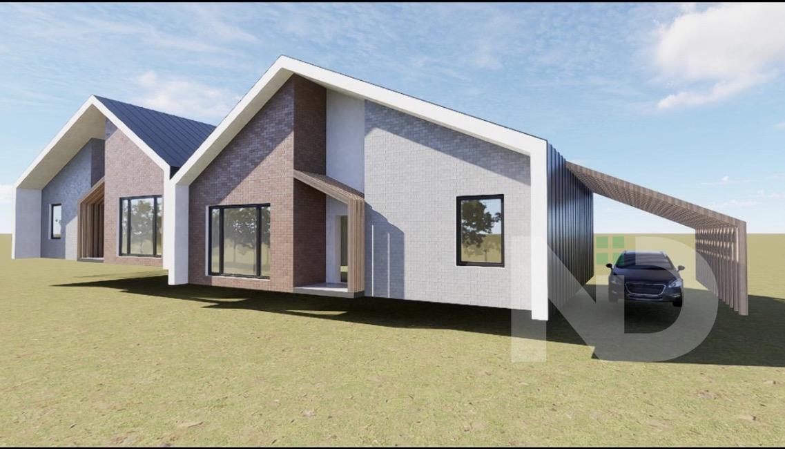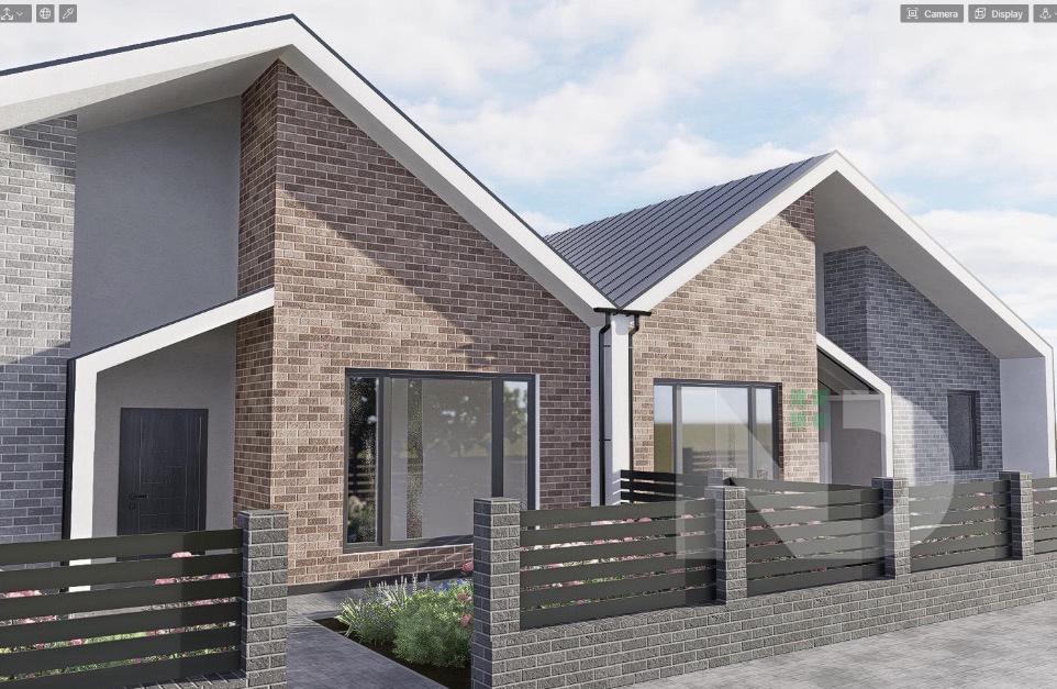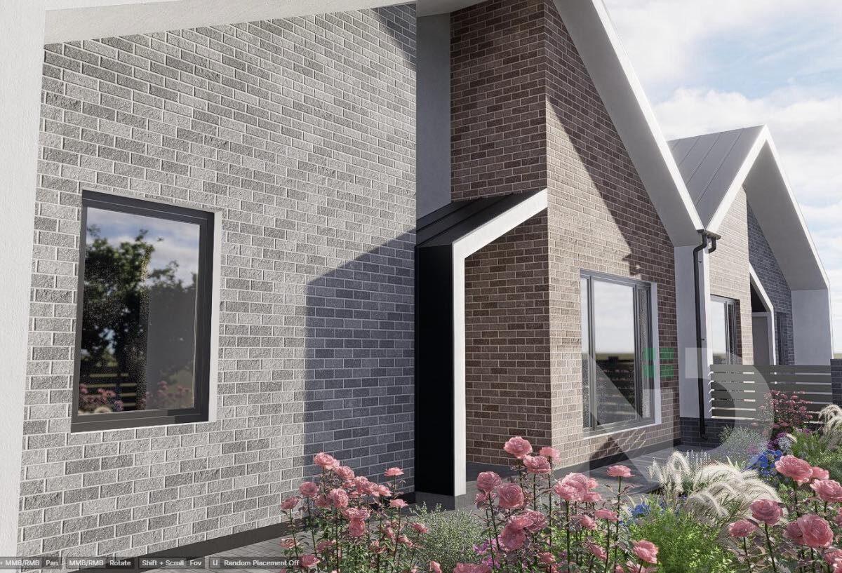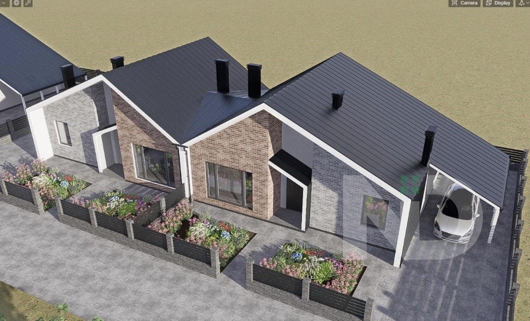 Удуплексі передбачено три окремі житлові кімнати, які можна використовувати як спальні, дитячі або кабінет. Простора кухня-вітальня є центральною зоною будинку, поєднує місце для приготування їжі, обідню зону та простір для відпочинку, з можливістю облаштування виходу на терасу або задній двір. У будинку передбачено два санвузли, що значно підвищує комфорт щоденного користування, а також наявні допоміжні приміщення — коридор, технічна зона та місця під шафи або гардеробні. Кімнати мають правильну форму, що дозволяє раціонально розмістити меблі та реалізувати різні дизайнерські рішення.