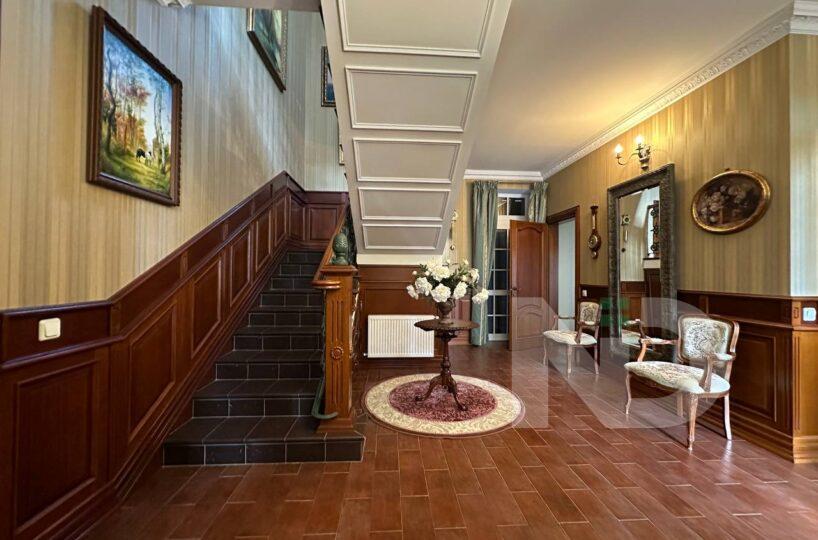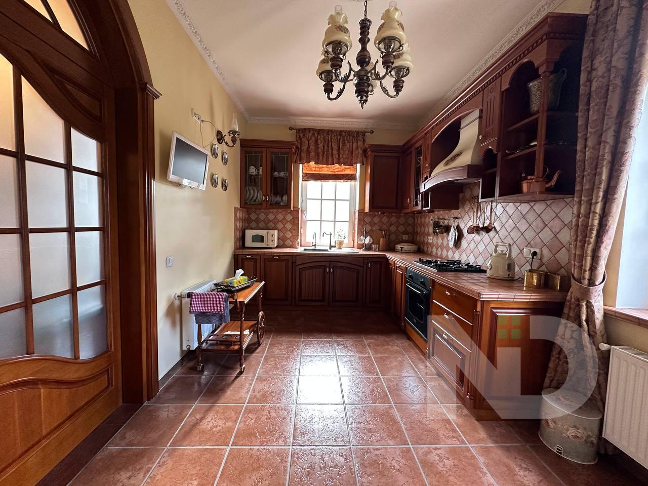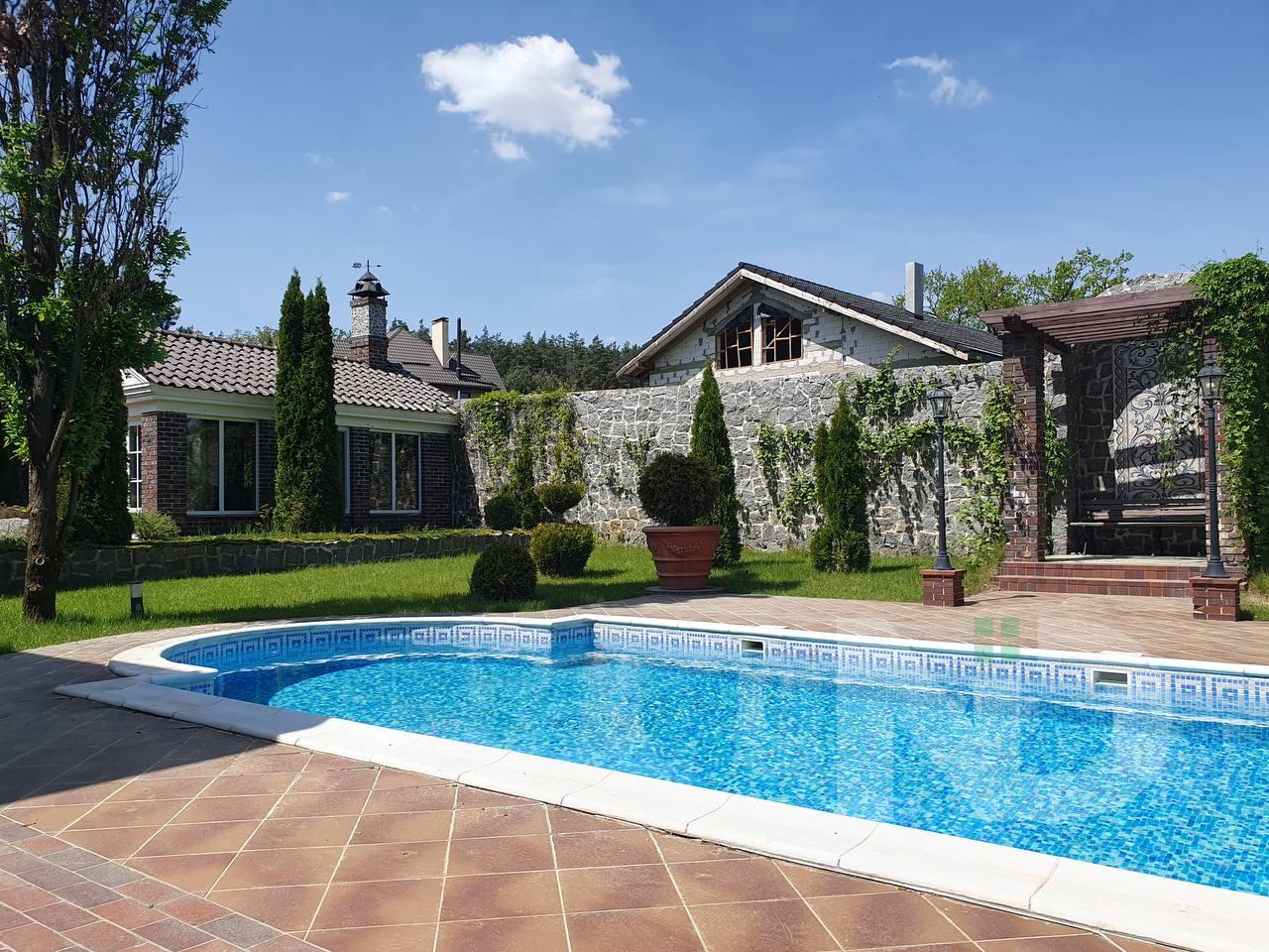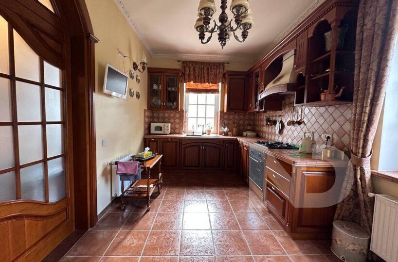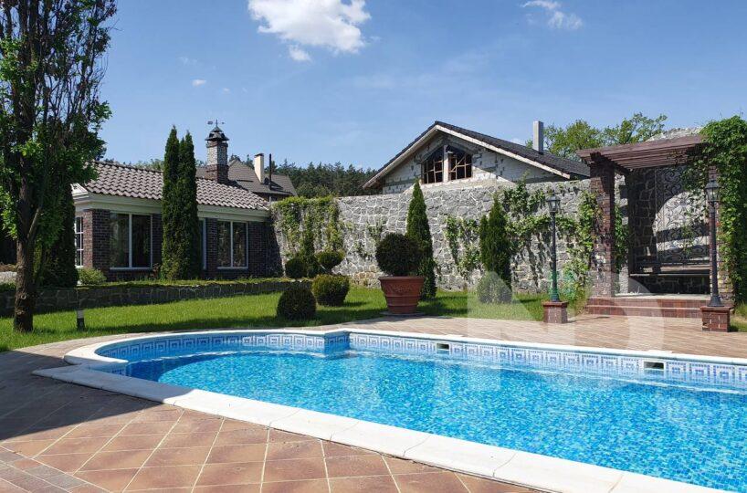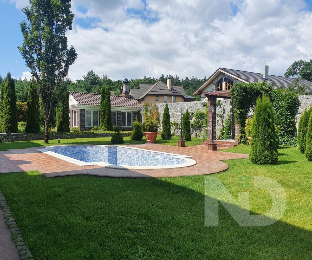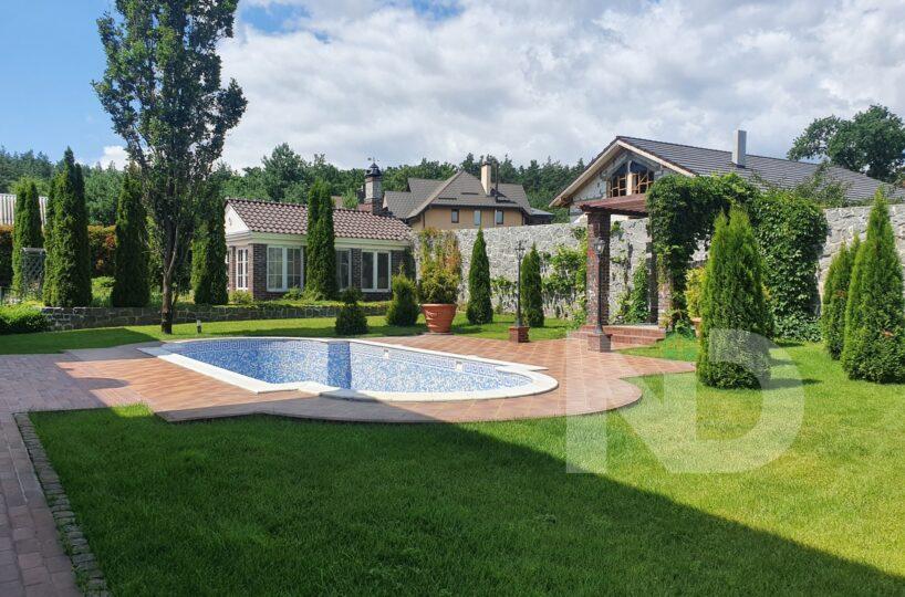 Перший поверх – хол, кухня, їдальня, вбиральня, зал з каміном, 2 санвузли, сауна, вихід на терасу з басейном, кімната відпочинку, пральня, гараж на два автомобілі. Другий поверх 3 спальні  в кожній є свій особистий санвузол і гардеробна, гостьова прохідна кімната.