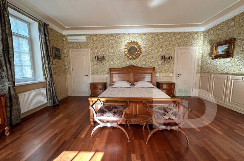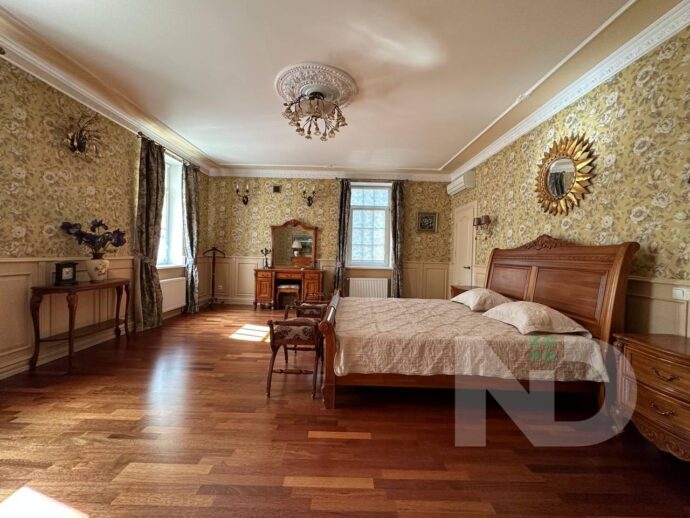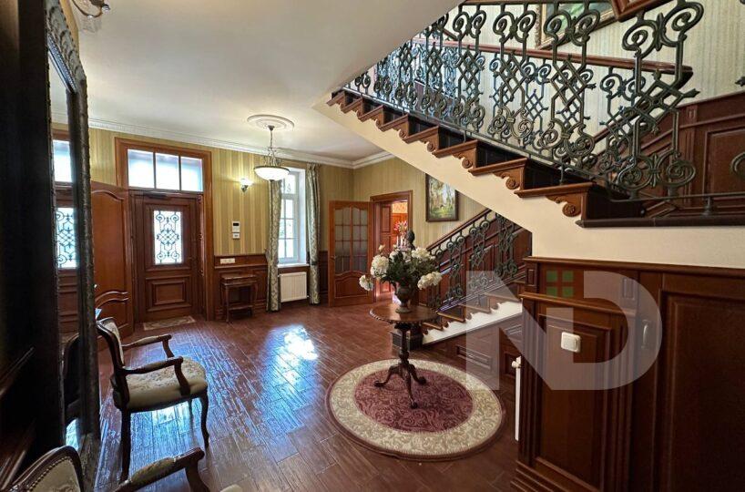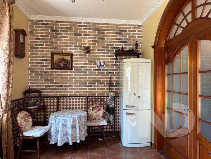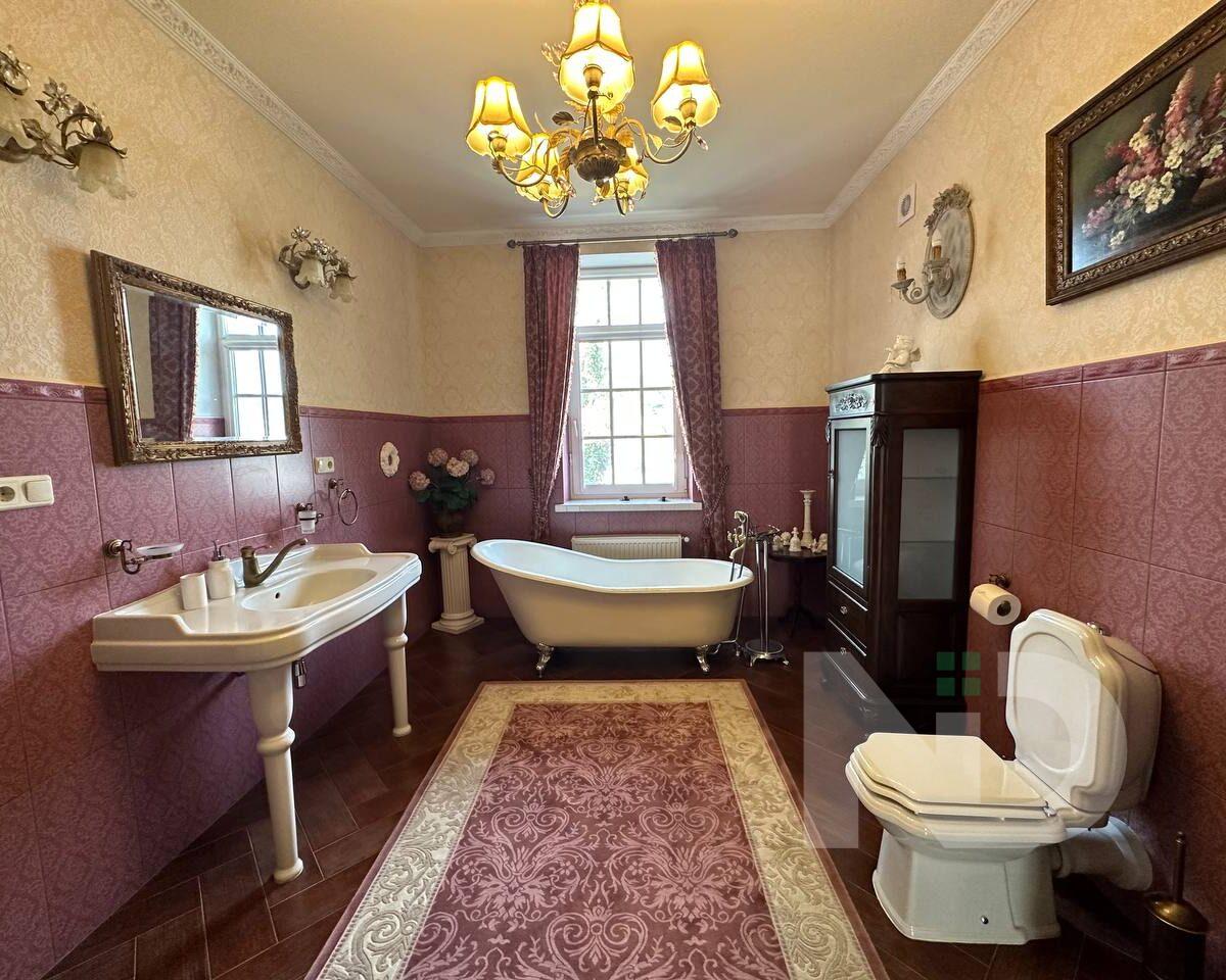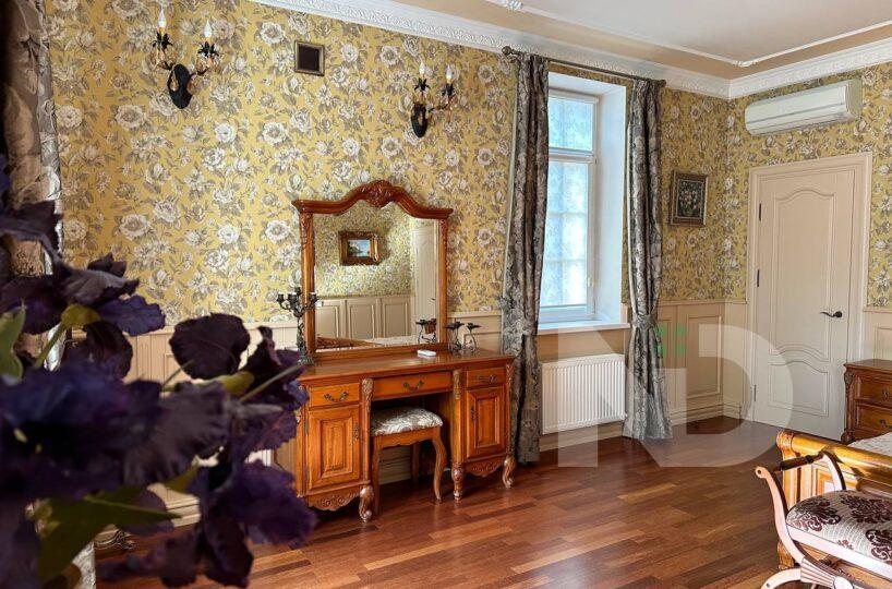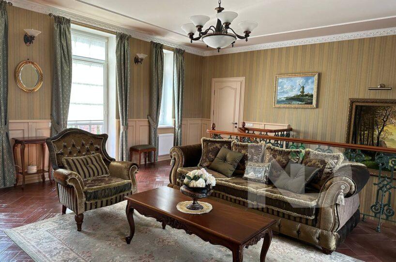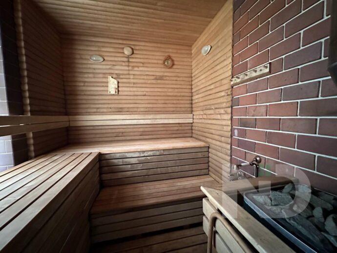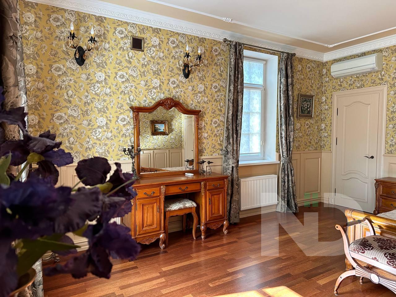 Перший поверх – хол, кухня, їдальня, вбиральня, зал з каміном, 2 санвузли, сауна, вихід на терасу з басейном, кімната відпочинку, пральня, гараж на два автомобілі. Другий поверх 3 спальні  в кожній є свій особистий санвузол і гардеробна, гостьова прохідна кімната.