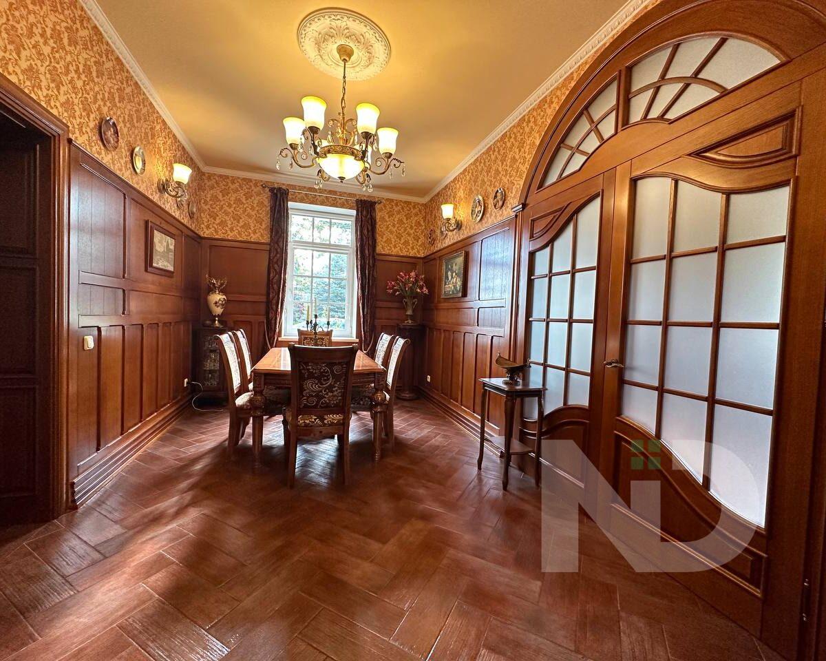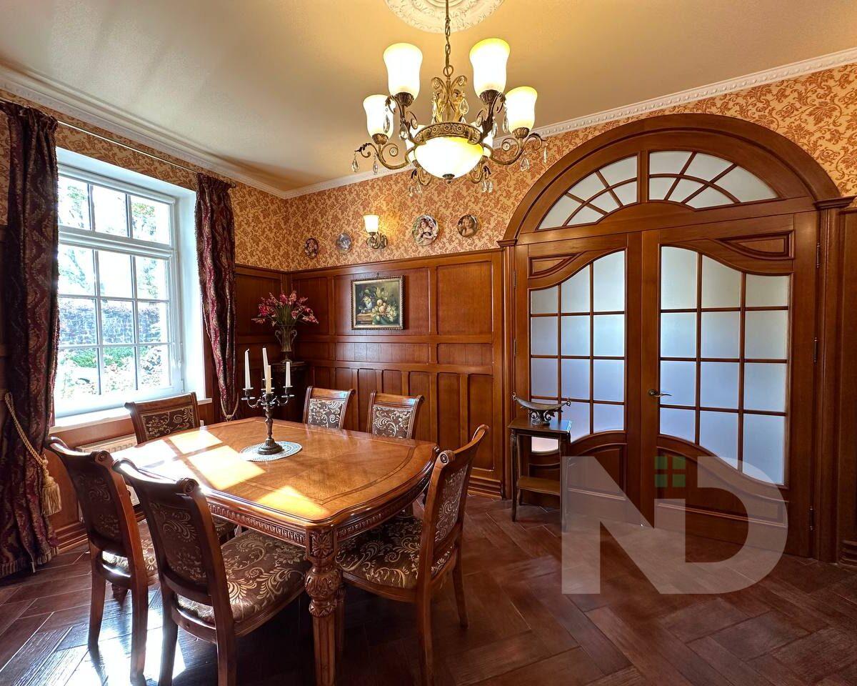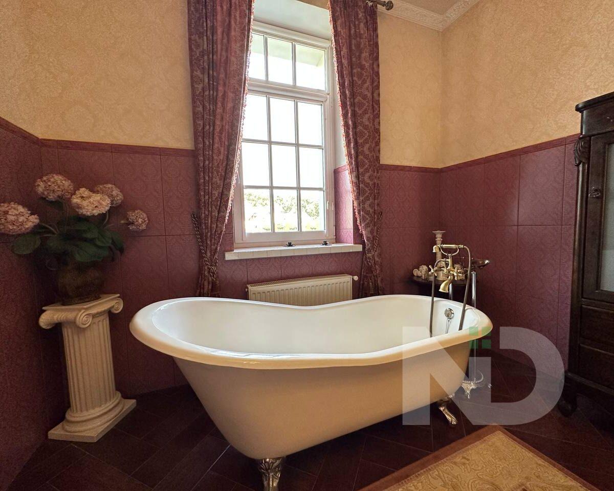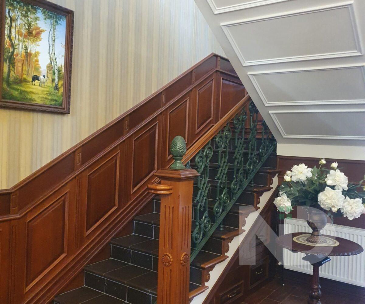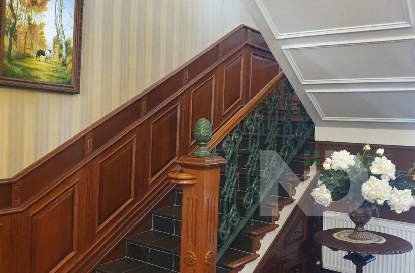 Перший поверх – хол, кухня, їдальня, вбиральня, зал з каміном, 2 санвузли, сауна, вихід на терасу з басейном, кімната відпочинку, пральня, гараж на два автомобілі. Другий поверх 3 спальні  в кожній є свій особистий санвузол і гардеробна, гостьова прохідна кімната.