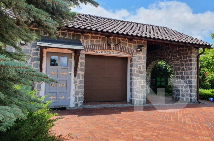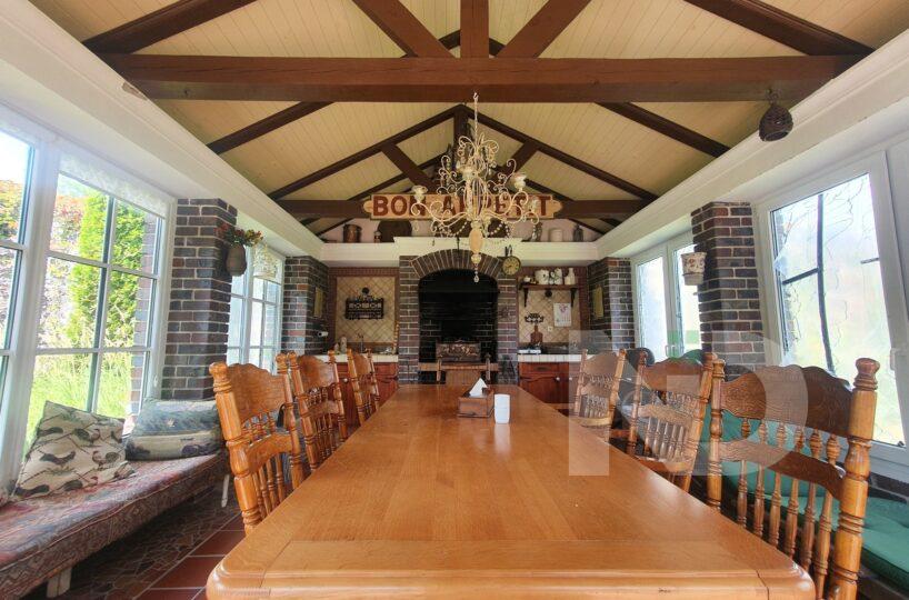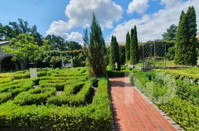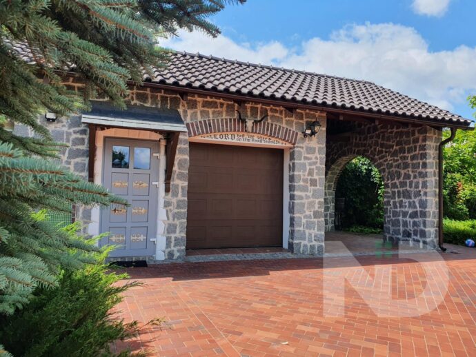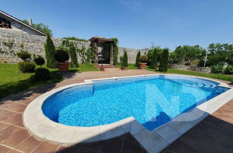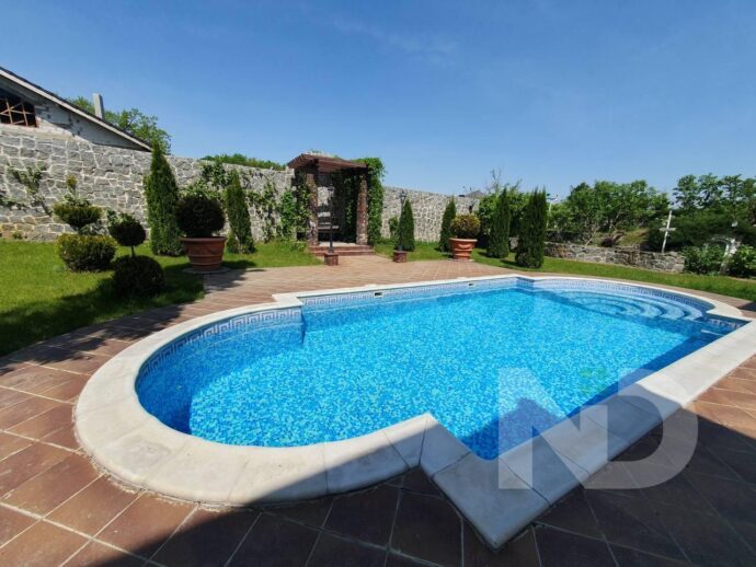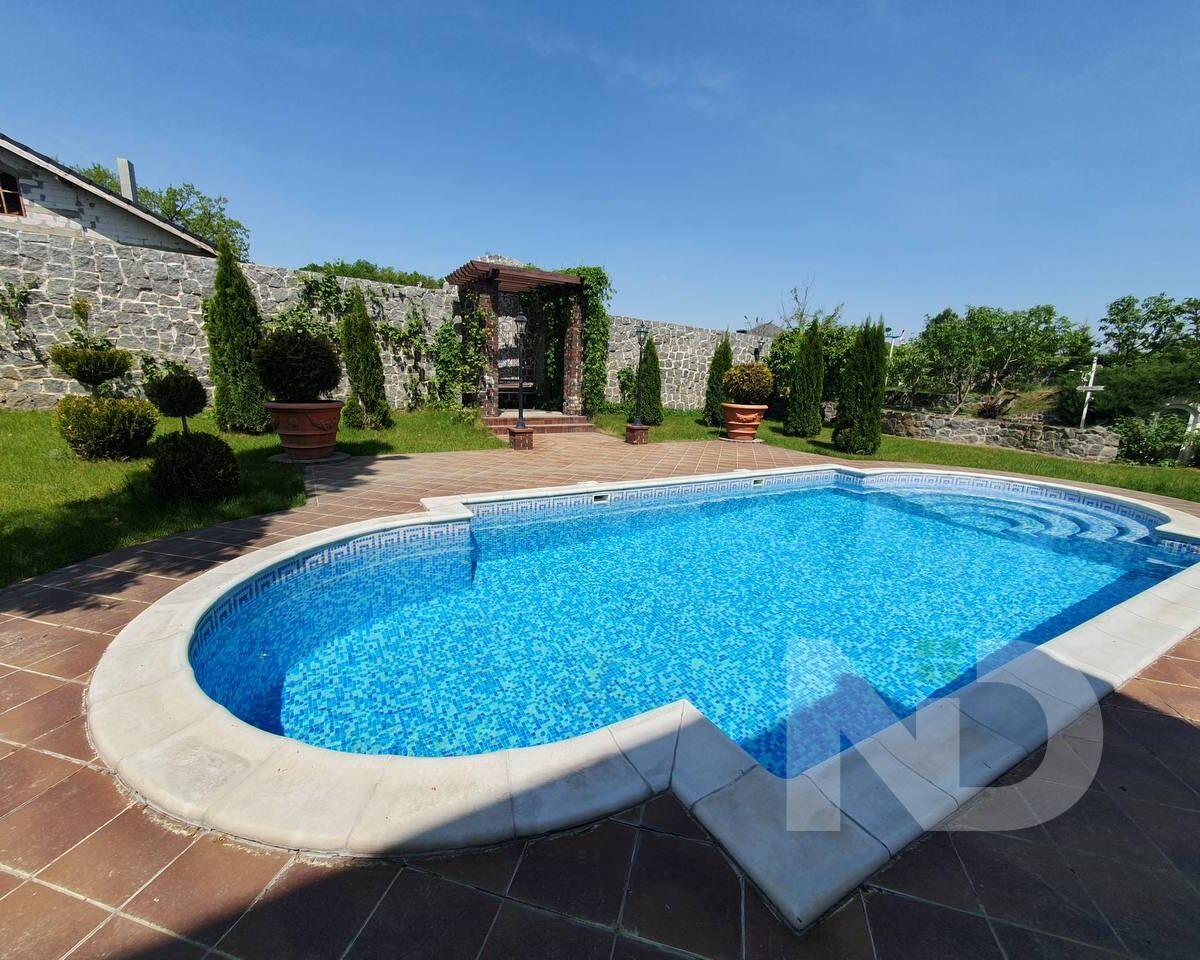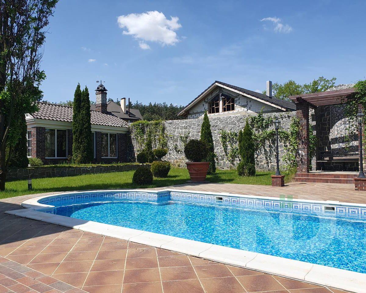 Комунікації: газове автономне опалення, дві свердловини з системою очищення і фільтрації води, світло + генератор 5,5 кв, каналізація – септик. На ділянці розташований басейн, альтанка, окремий будиночок відпочинку з барбекю і каміном, садові меблі, будиночок для охорони зі своїм санвузлом і спальною кімнатою, винний погріб.