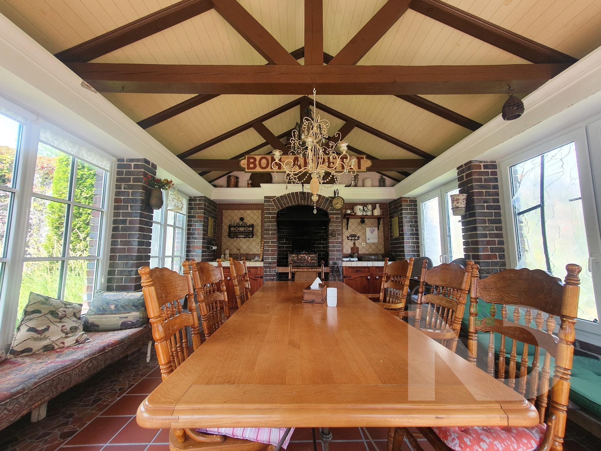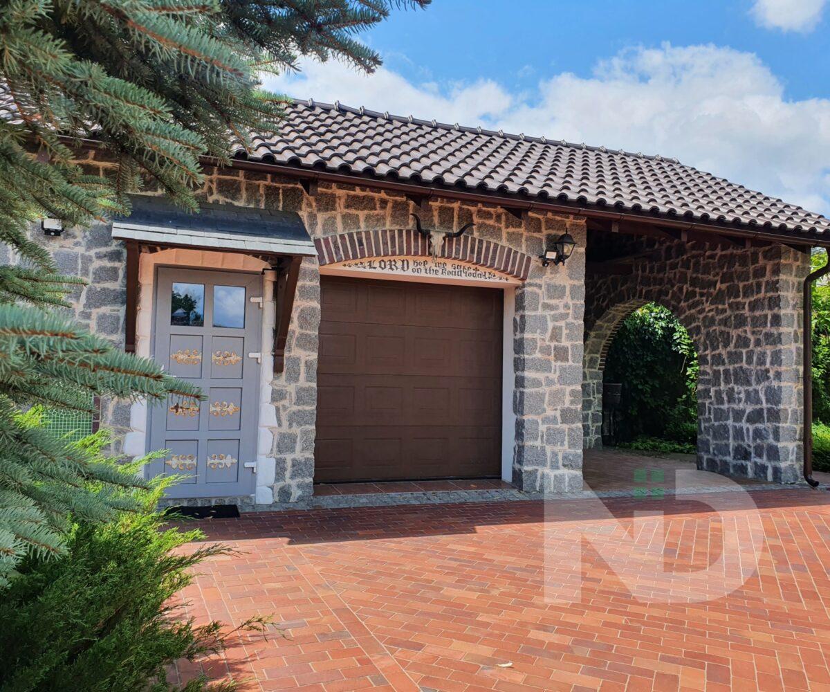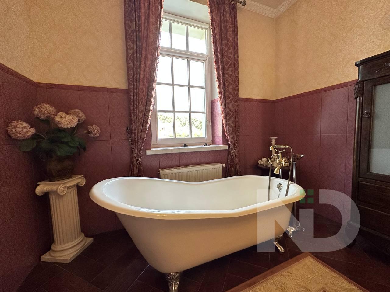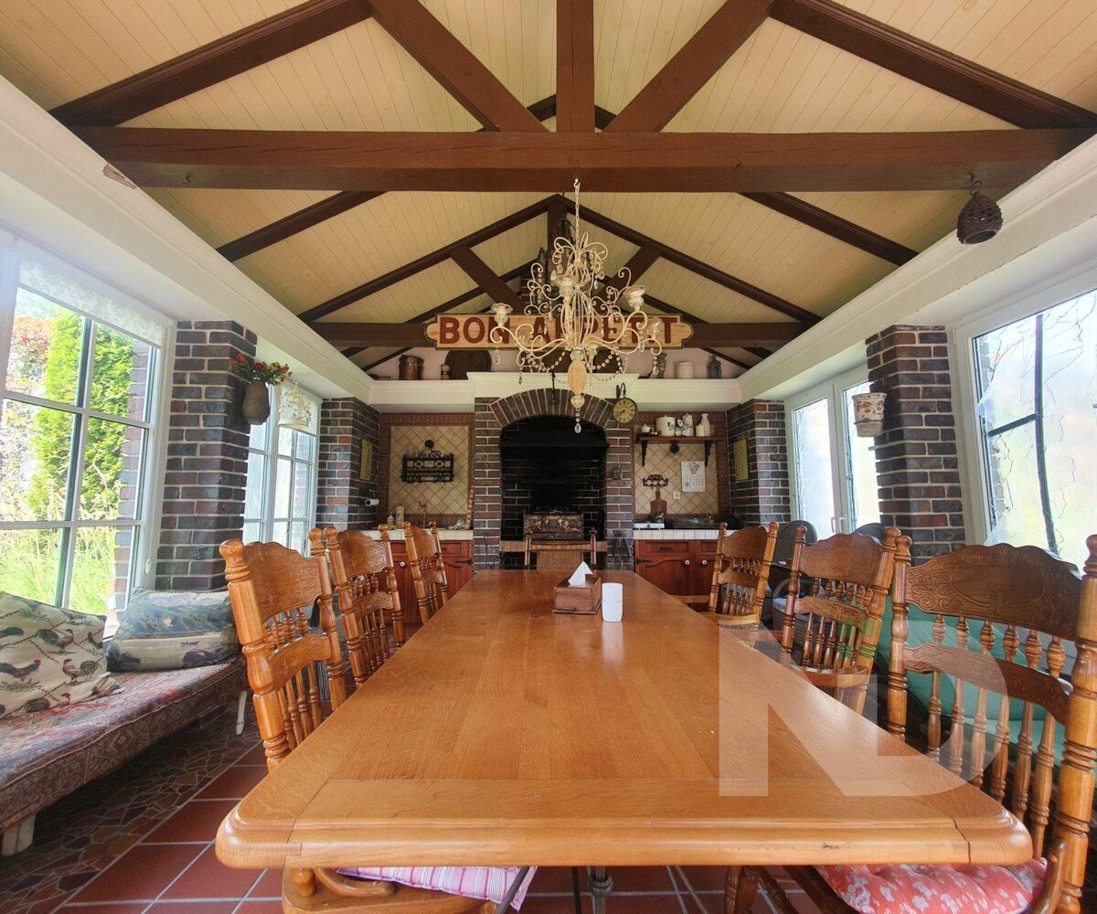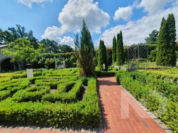 Комунікації: газове автономне опалення, дві свердловини з системою очищення і фільтрації води, світло + генератор 5,5 кв, каналізація – септик. На ділянці розташований басейн, альтанка, окремий будиночок відпочинку з барбекю і каміном, садові меблі, будиночок для охорони зі своїм санвузлом і спальною кімнатою, винний погріб.