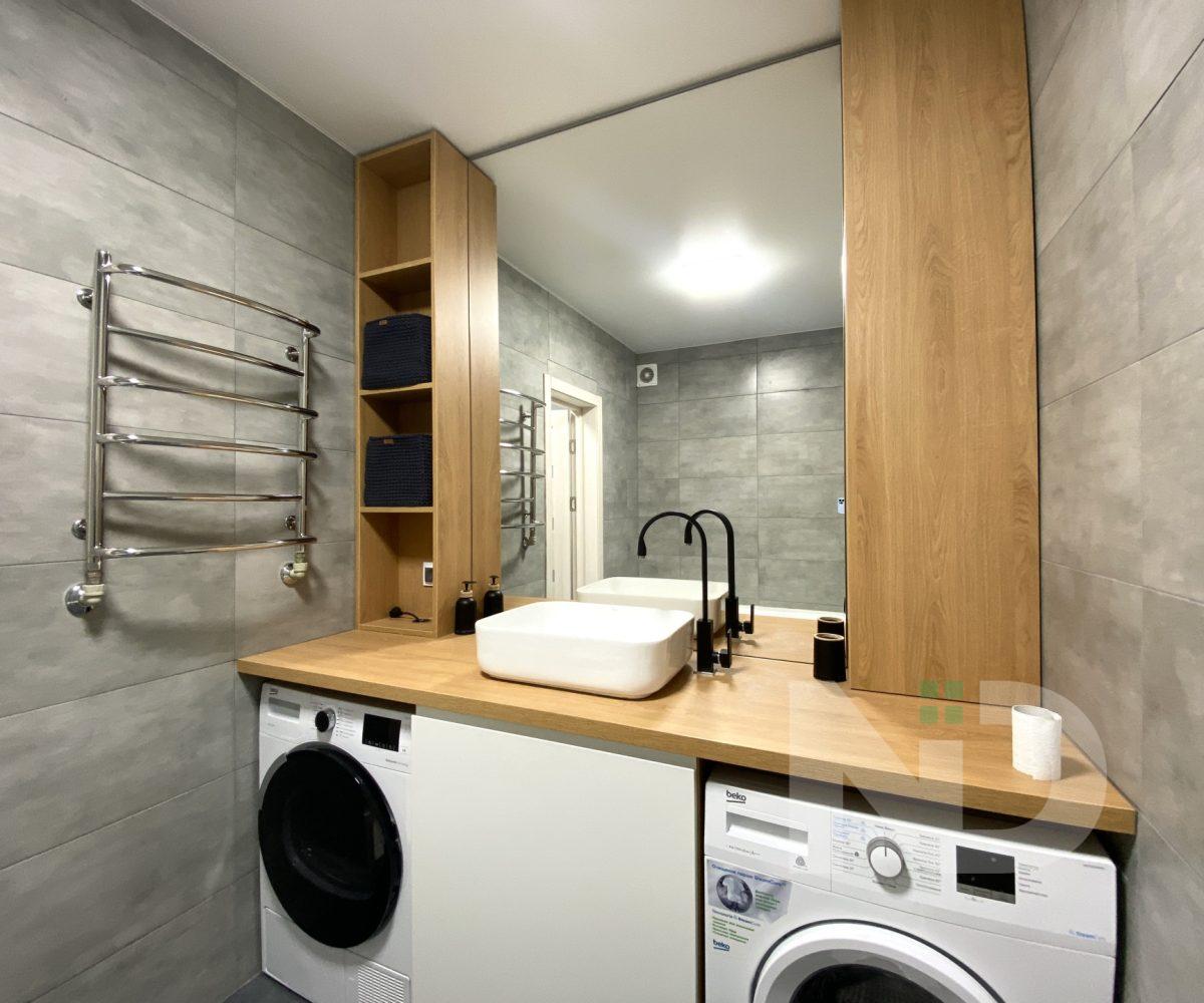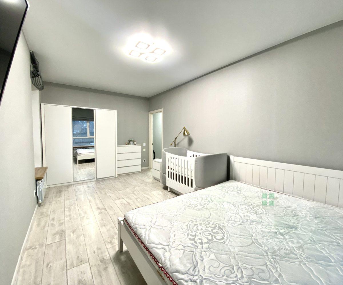 Житло повністю укомплектоване меблями та технікою: сушильна та пральна машини, телевізор, індукційна варильна поверхня, газова духова шафа, холодильник, електрочайник. У кімнатах вже встановлені ліжко, дитяче ліжечко, розкладне крісло, шафи-купе, комод і системи зберігання — можна заселятися одразу після купівлі. По всій квартирі реалізована система теплої підлоги: у кімнатах та кухні — електрична, у ванній кімнаті — водяна.