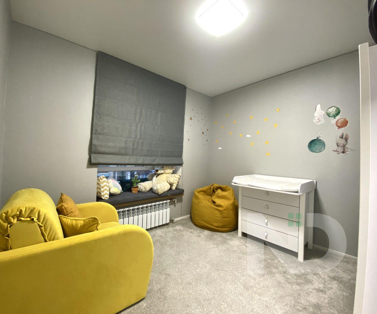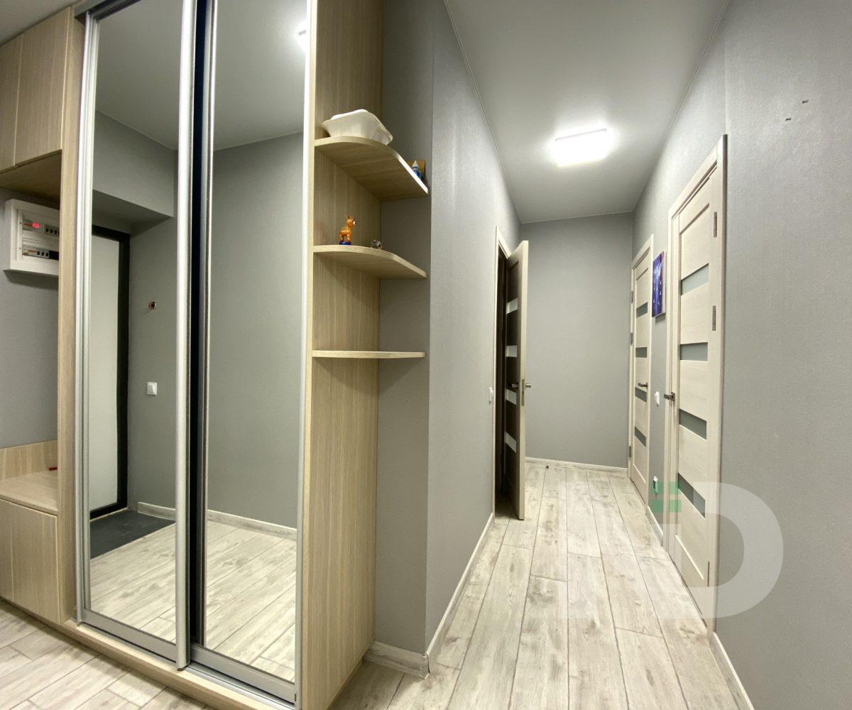 Планування продумане під потреби сім’ї: простора кухня-їдальня з розкладним диваном як додатковою зоною відпочинку, дві окремі кімнати (одна облаштована під дитячу), повноцінна ванна кімната площею 5 м² та місткий коридор із великою шафою-купе. Квартира має світлий універсальний ремонт, який легко адаптується під будь-який стиль.