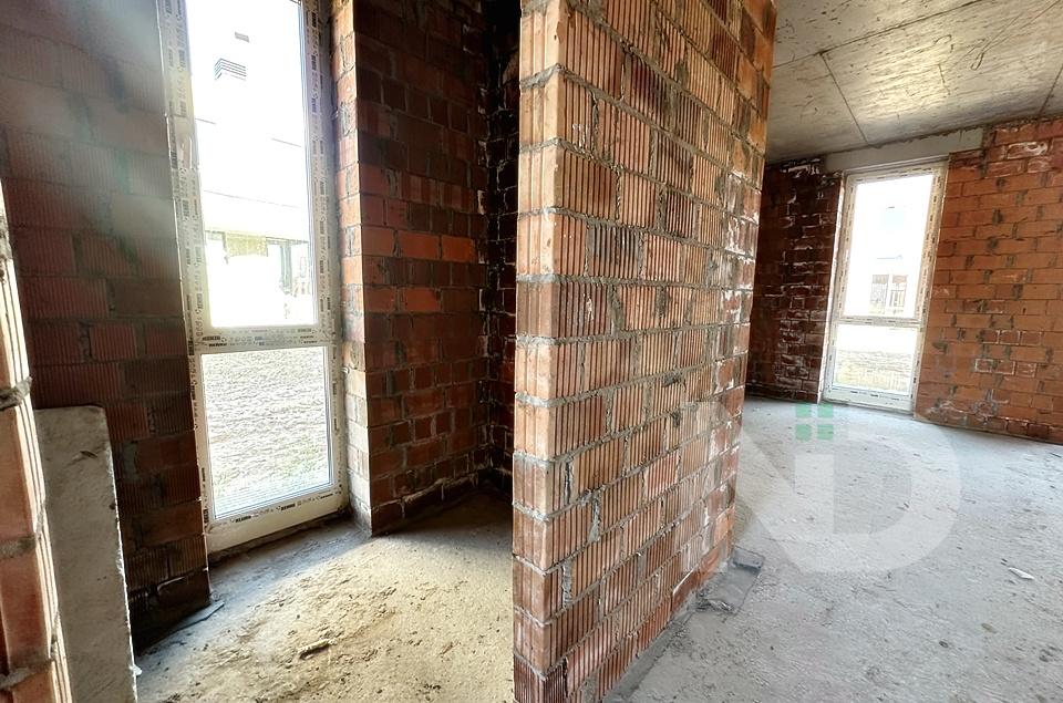 Будинок зведено з керамоблоку, утеплено мінеральною ватою. Зроблено сучасний фасад з облицювальної плитки, термодерева та декоративної штукатурки.