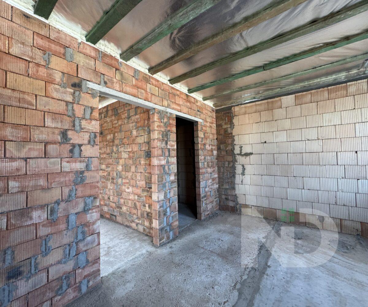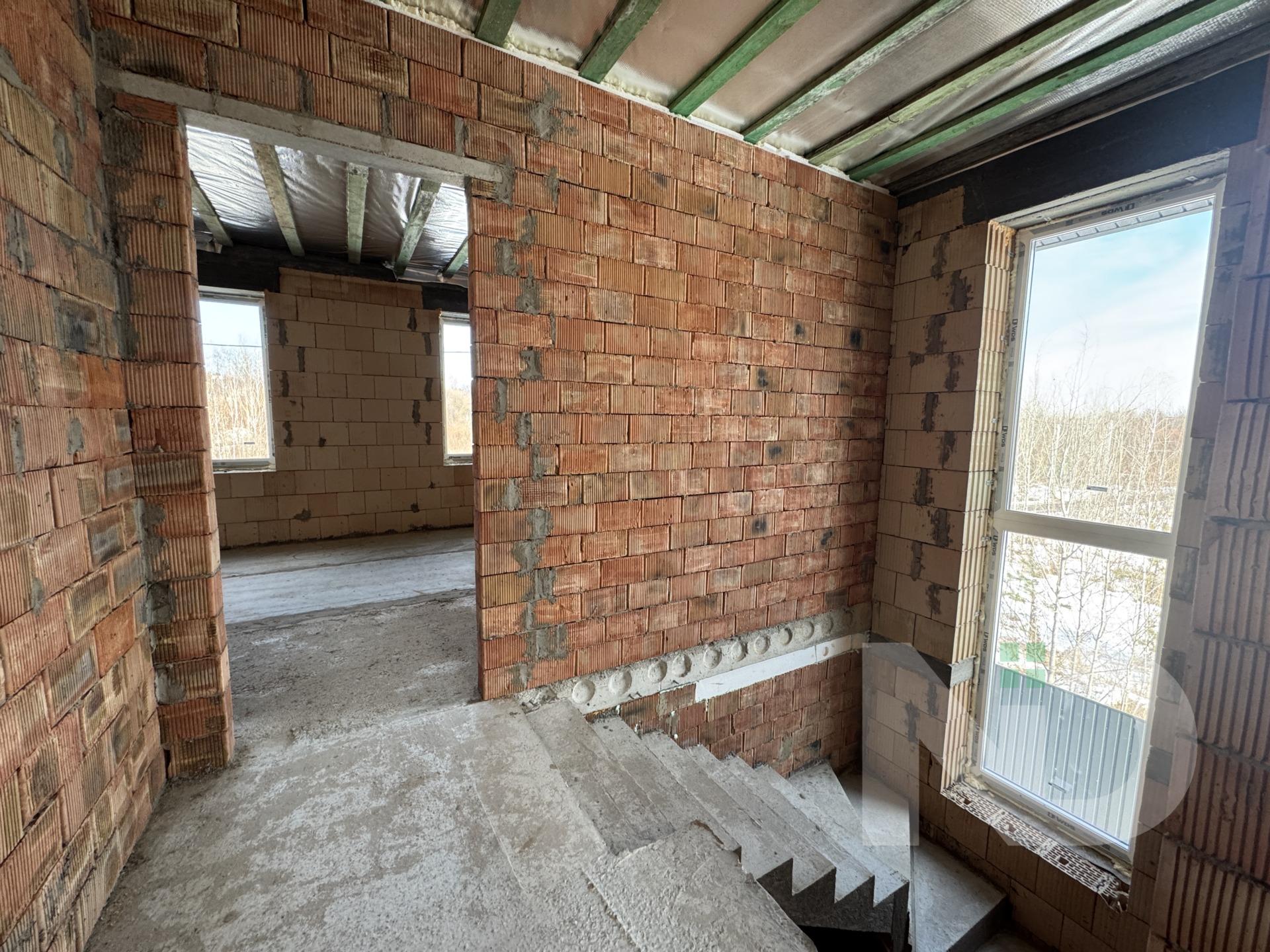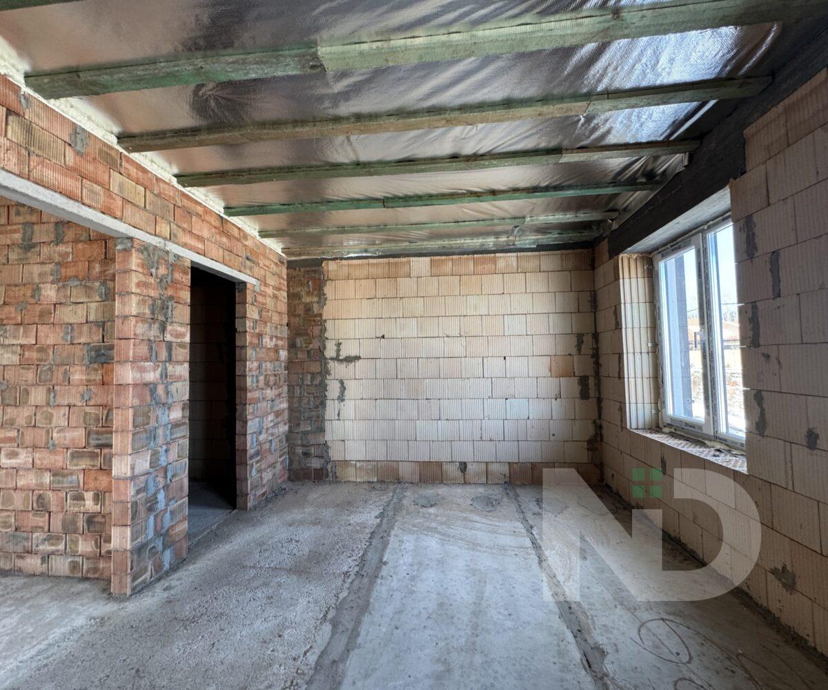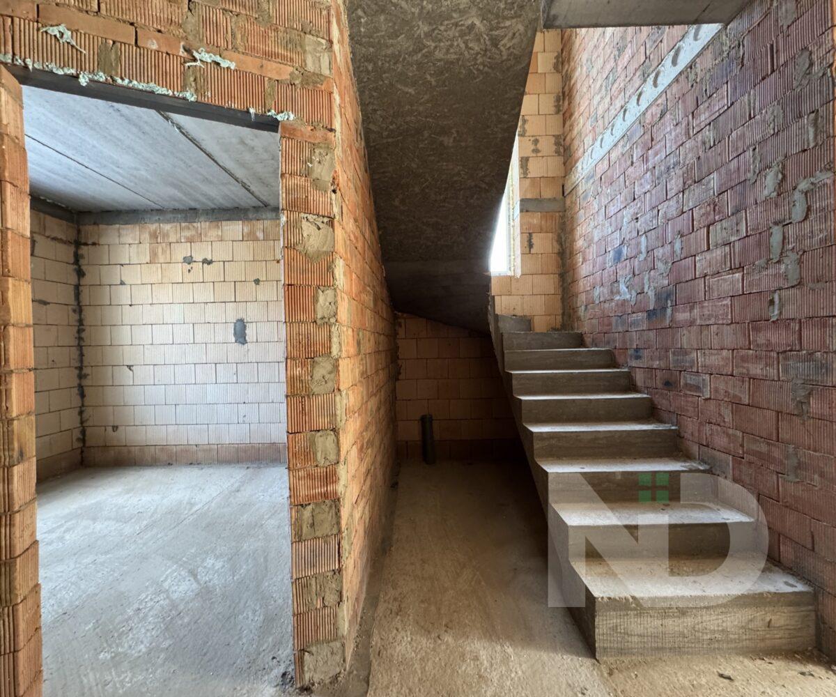 Будинок зведено на монолітному утепленому фундаменті глибиною 1,5 метра з гідроізоляцією. Стіни виконані з керамоблоку 380 мм та утеплені пінопластом 100 мм щільністю 16 кг/м², що гарантує тепло та енергоефективність. Перекриття — бетонні плити, сходи — монолітно-бетонні, а дах накритий металочерепицею. Вікна WDS із двокамерним енергозберігаючим склопакетом на аргоном забезпечують якісну шумо- та теплоізоляцію. Стеля другого поверху додатково утеплена базальтовою ватою 200 мм.
