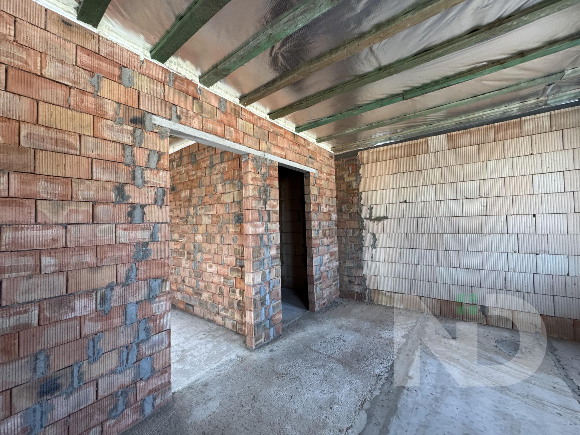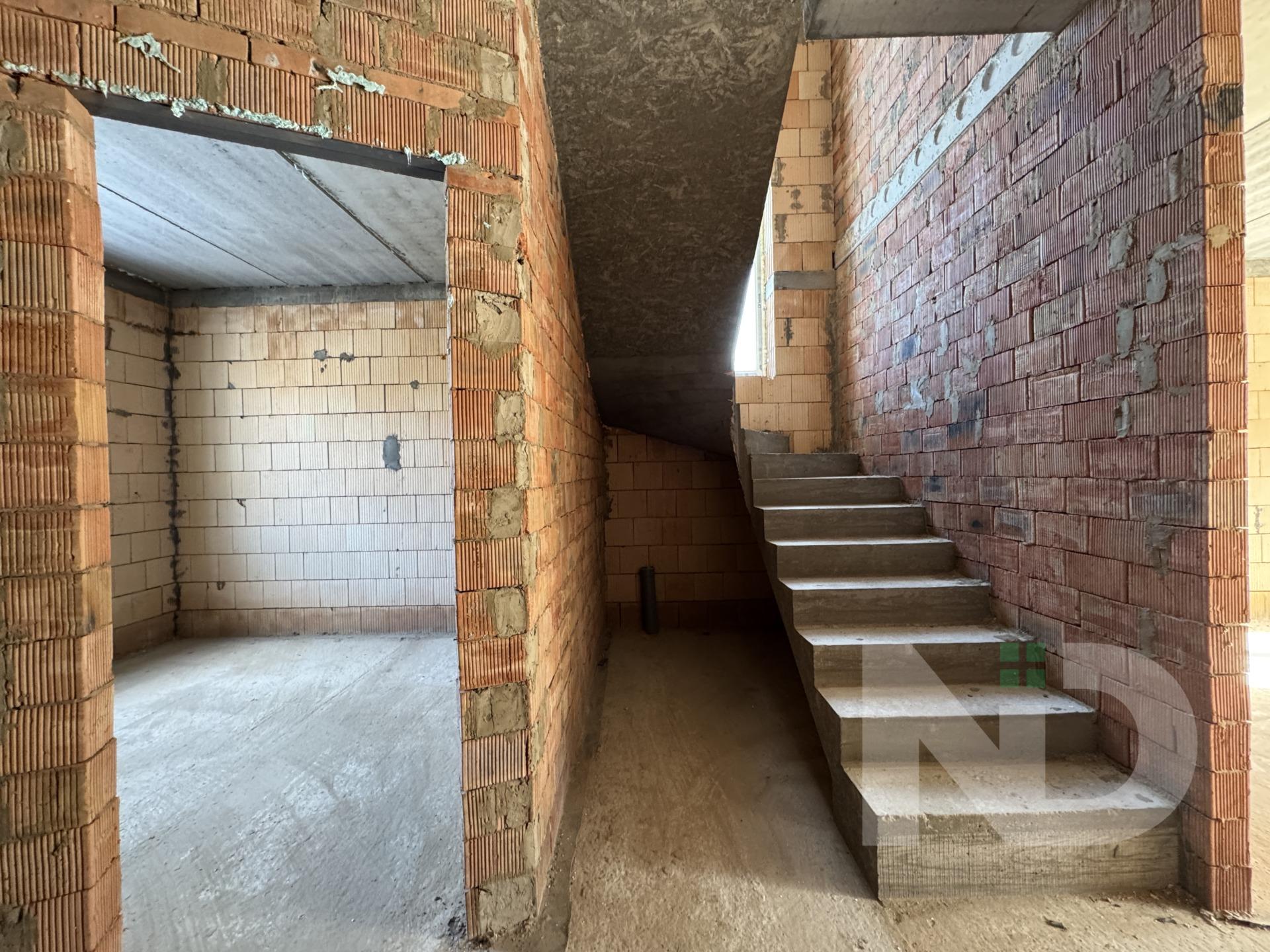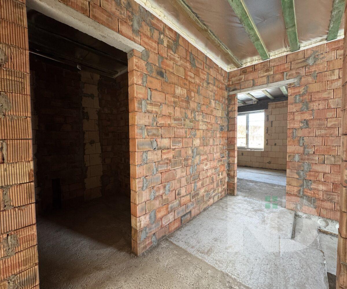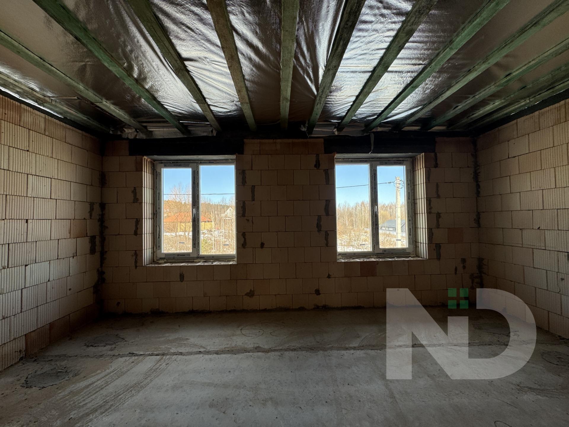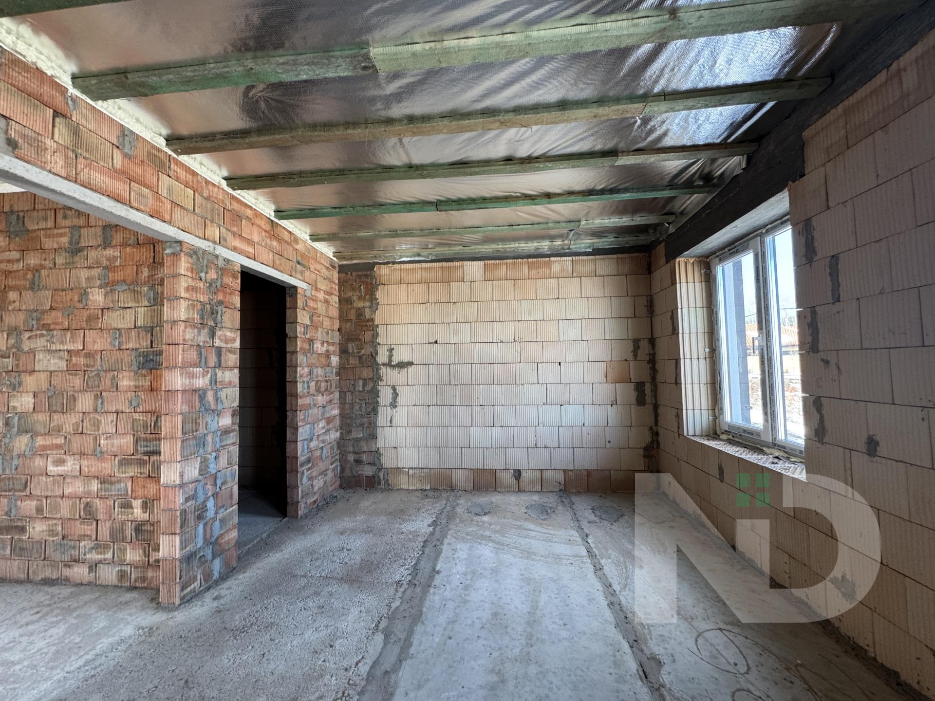 Будинок зведено на монолітному утепленому фундаменті глибиною 1,5 метра з гідроізоляцією. Стіни виконані з керамоблоку 380 мм та утеплені пінопластом 100 мм щільністю 16 кг/м², що гарантує тепло та енергоефективність. Перекриття — бетонні плити, сходи — монолітно-бетонні, а дах накритий металочерепицею. Вікна WDS із двокамерним енергозберігаючим склопакетом на аргоном забезпечують якісну шумо- та теплоізоляцію. Стеля другого поверху додатково утеплена базальтовою ватою 200 мм.