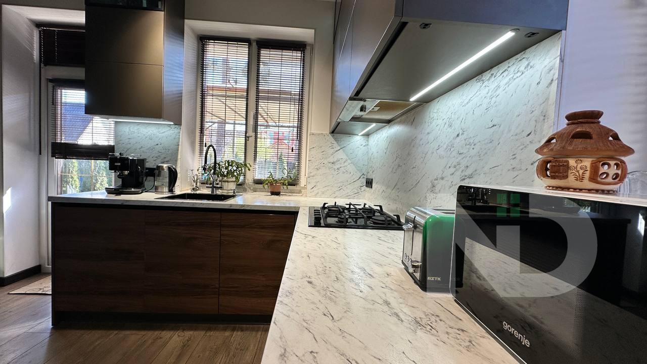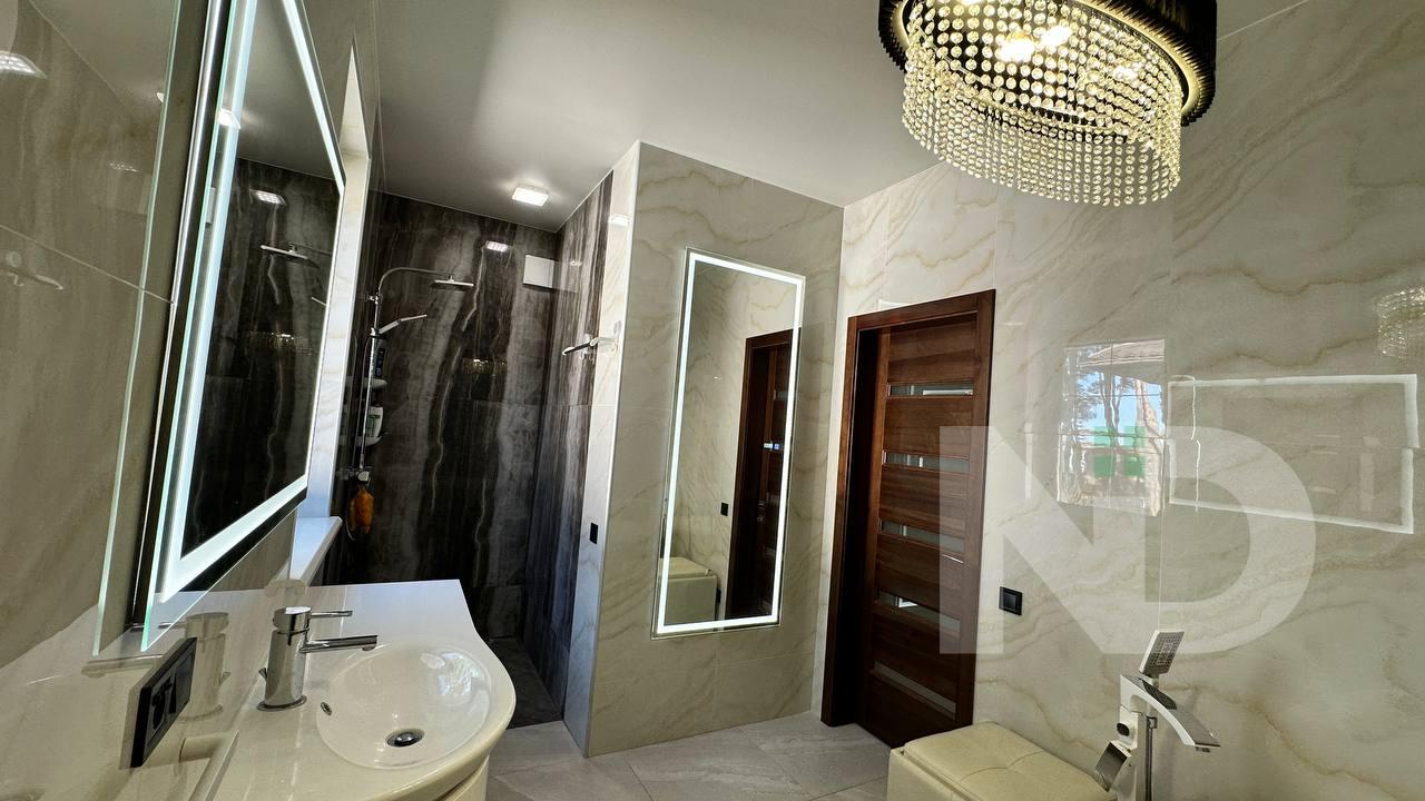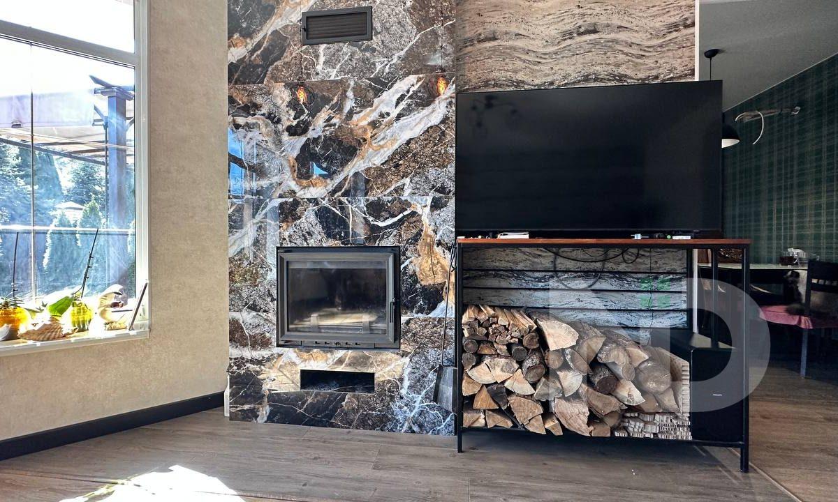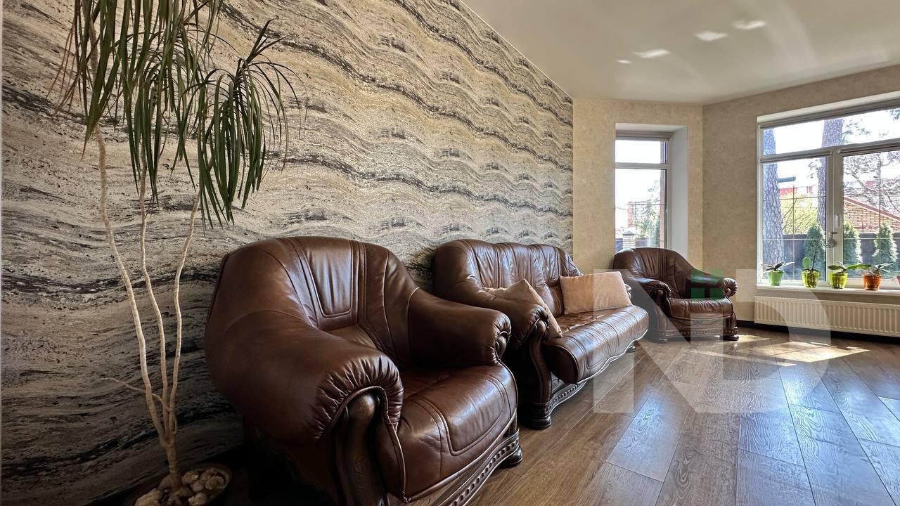 Будинок загальною площею 285 м² продуманий до дрібниць і чудово підійде для великої родини. Планування включає 6 повноцінних кімнат, що дозволяє облаштувати як затишні спальні, так і робочі кабінети або гостьові зони. Простора вітальня з каміном створює атмосферу затишку, кухня повністю укомплектована та гармонійно поєднує функціональність та дизайн. У будинку встановлені два каміни на різних поверхах, які здатні ефективно обігрівати весь простір.