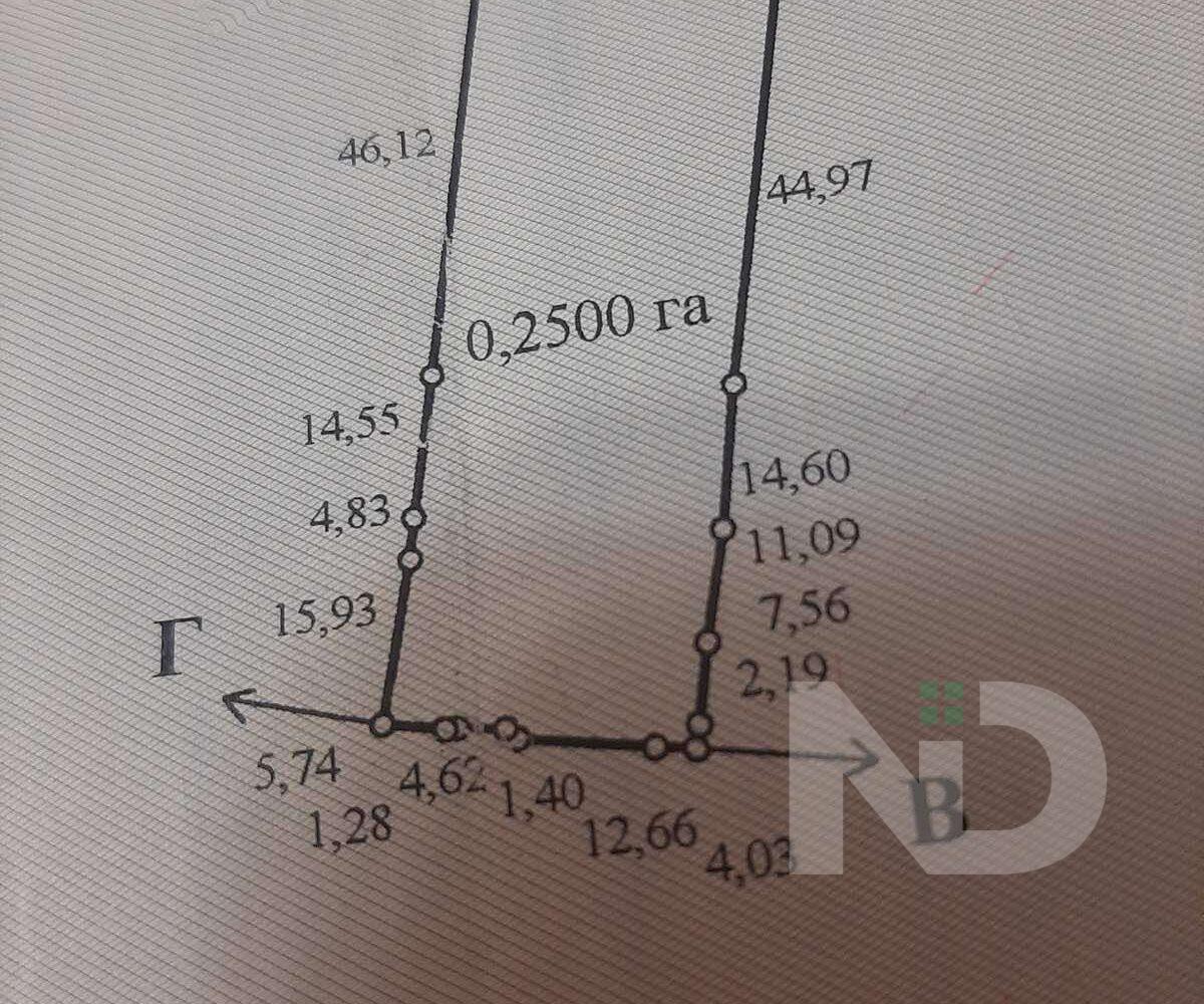 Ділянка рівна, правильної форми, під житлову забудову 25 соток – ширина фасаду 32.5 метрів., 45 метрів вглибину. Таким же прямокутником примикає ще 10 соток під сільськогосподарські роботи, треба доприватизувати.