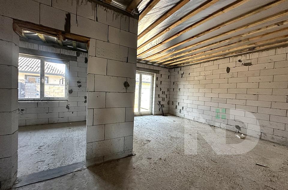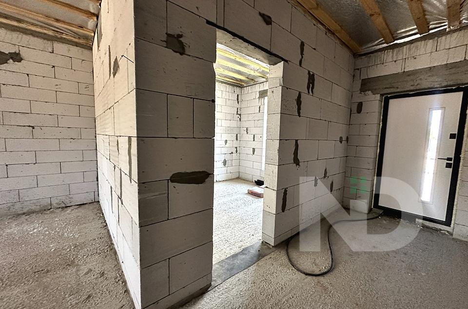 Побудований з газоблоку, утеплення пінопласт, вхідна вода свердловина та септик, заведено 3 фази електрики 10 кВт, газ. Готовність будинків літо 2025.