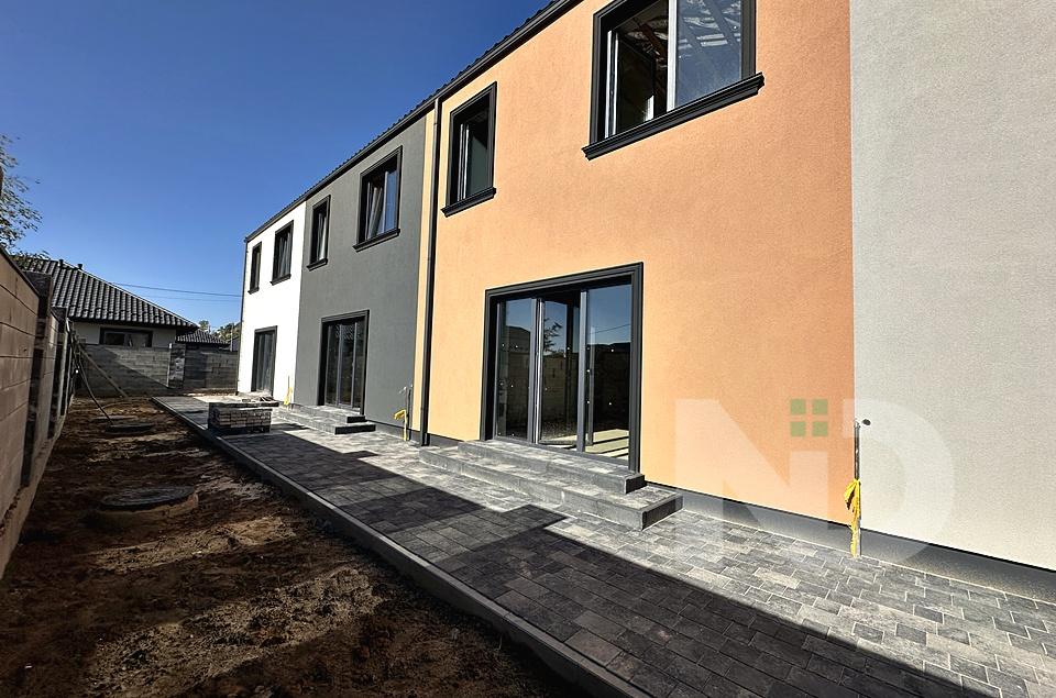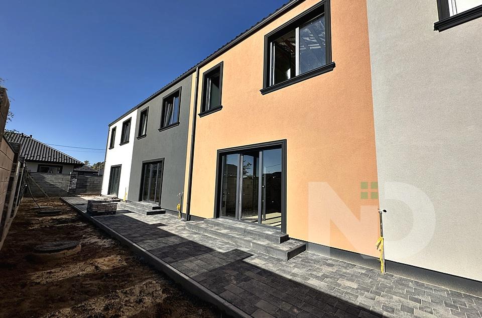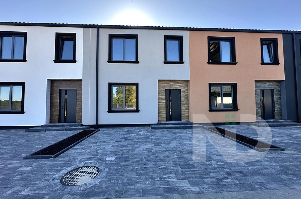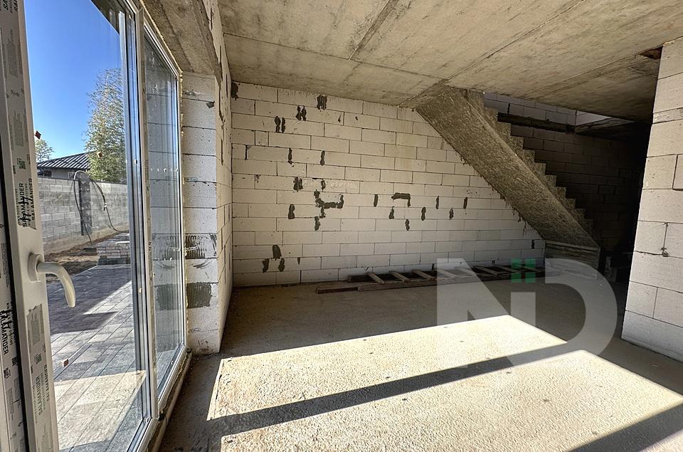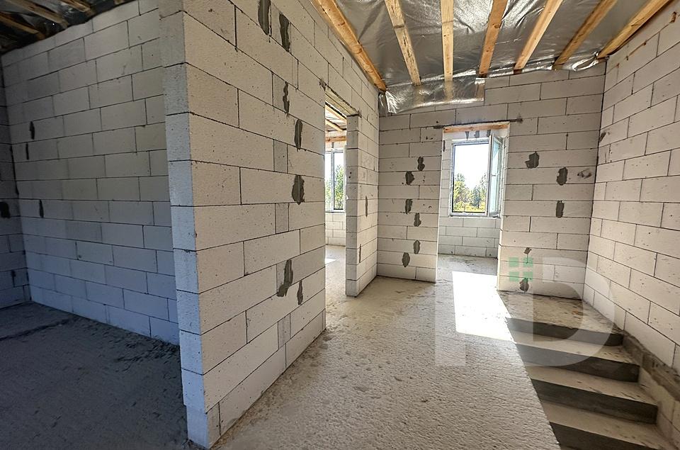 Побудований з газоблоку, утеплення пінопласт, вхідна вода індивідуальна свердловина та об’ємний септик 12 кубів, заведено 3 фази електрики 10 кВт, опалення газ. Готовність таунхаусів літо 2025. Можливі індивідуальні умови розтермінування.