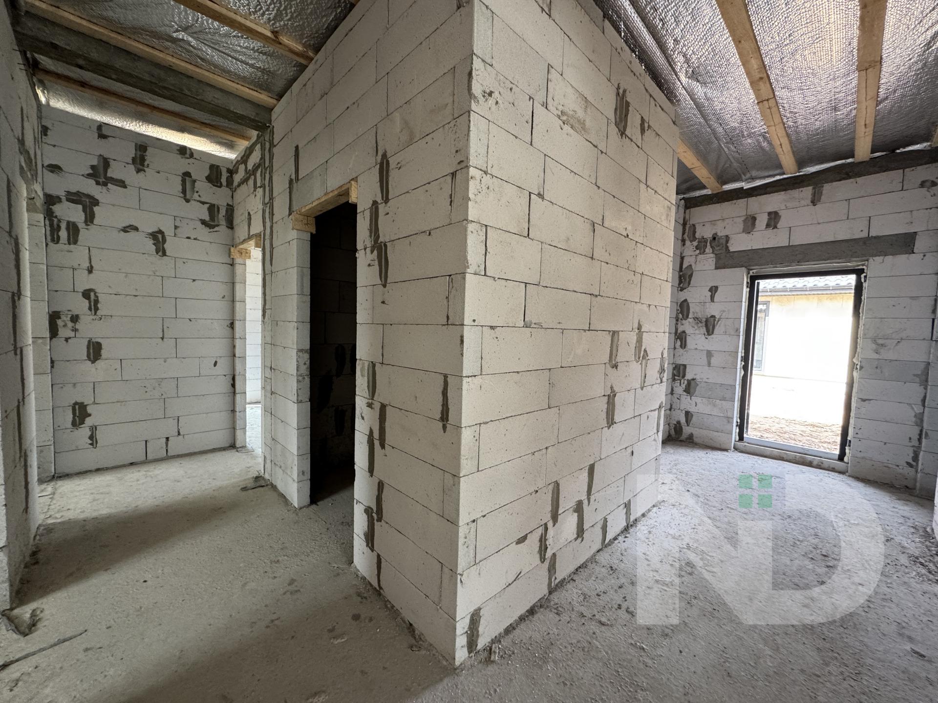 Побудований із газоблоку, утеплений пінопласт, власна свердловина та об’ємний септик на 8 кубів, заведено 7,5 кВт електрики, опалення газ.