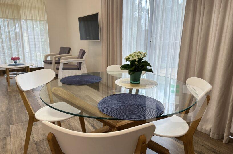 Зручне планування з 3 окремими кімнатами, 2 санвузлами, зручним коридором та просторою кухнею-вітальнею (52 м²) з виходом на велику, криту, терасу.